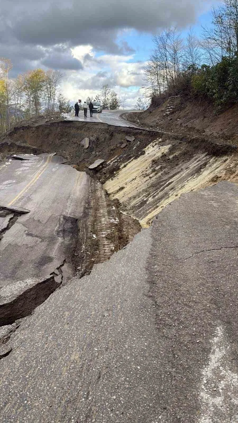 KASTAMONU’NUN ÇATALZEYTİN İLÇESİNE ULAŞIMIN SAĞLANDIĞI DEVREKANİ-ÇATALZEYTİN KARAYOLU HEYELAN SEBEBİYLE ÇÖKTÜ. YOL ULAŞIMA KAPATILDI.
