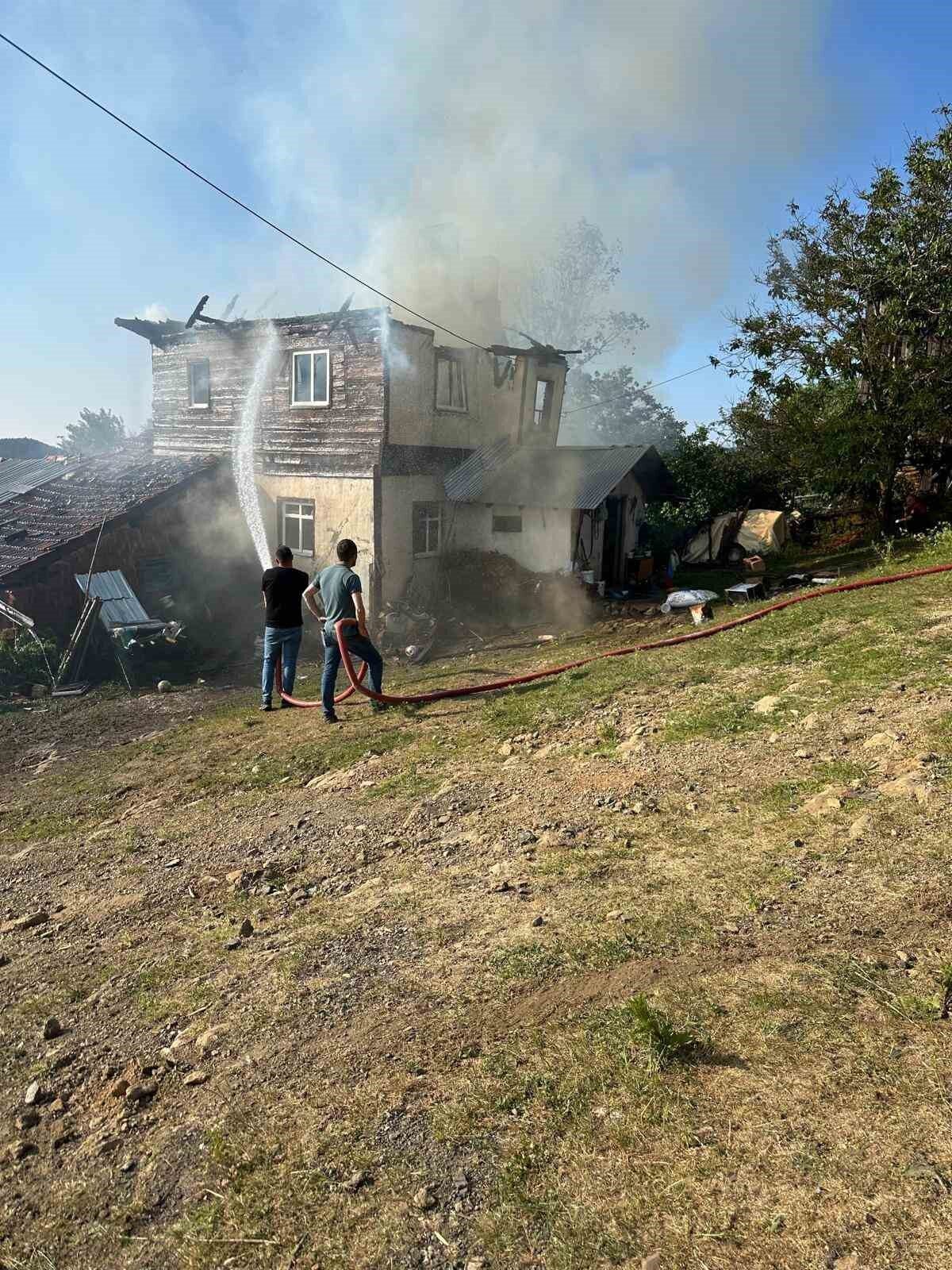 Yangında iki katlı ahşap ev tamamen yanarak kullanılamaz hale geldi. Yangında jandarma ekipleri, çevrede güvenlik önlemleri alarak incelemelerde bulundu.
