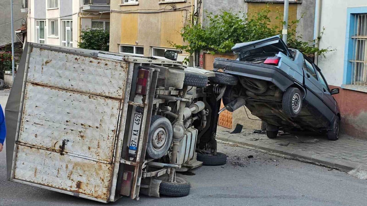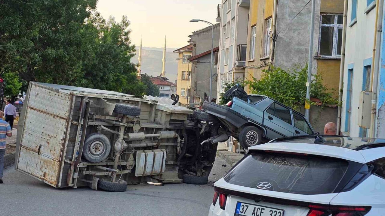Kaza, sabah saatlerinde Tosya ilçesi Hükümet Caddesi’nde meydana geldi. Edinilen bilgilere göre, A.E. (61) yönetimindeki 37 KA 462 plakalı kamyonet, sürücünün direksiyon hakimiyetini kaybetmesi neticesinde park halindeki otomobile çarptı. Çarpmanın etkisi ile savrulan kamyonet devrildi. Kazada kamyonet sürücüsü yaralandı.