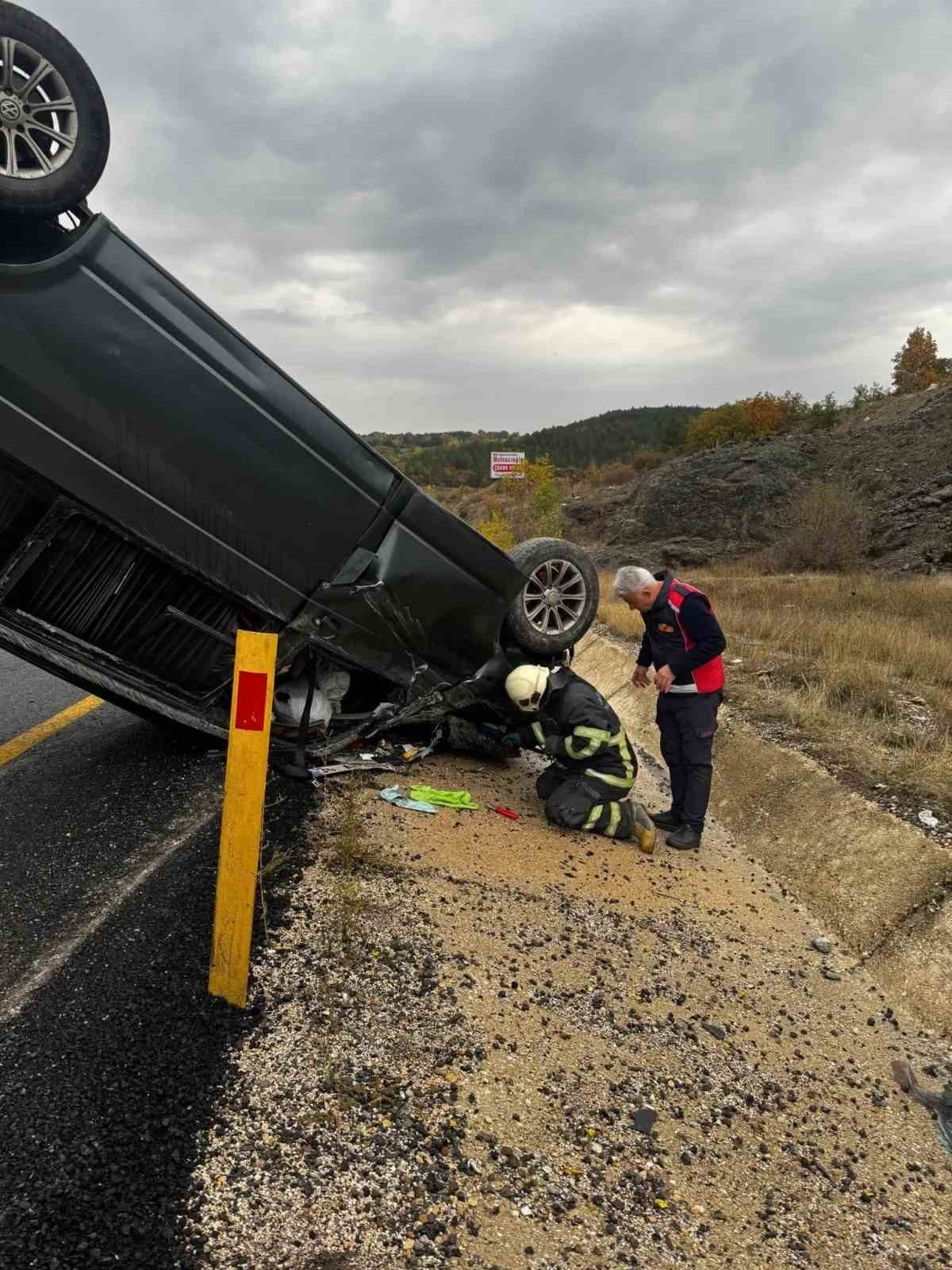 Kastamonu’da yoldan çıkarak takla atan hafif ticari aracın sürücüsü yaralandı.