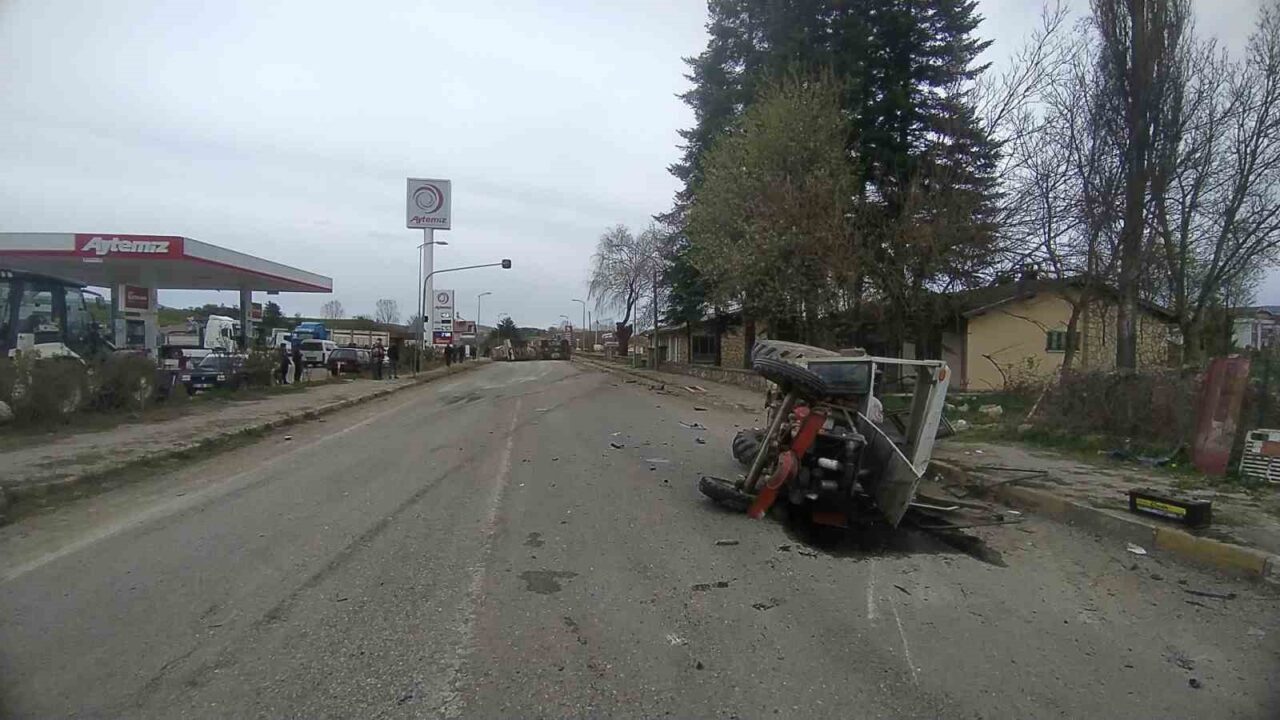 Kastamonu’nun Daday ilçesinde traktör ile beton malzemesi taşıyan tır çarpıştı.