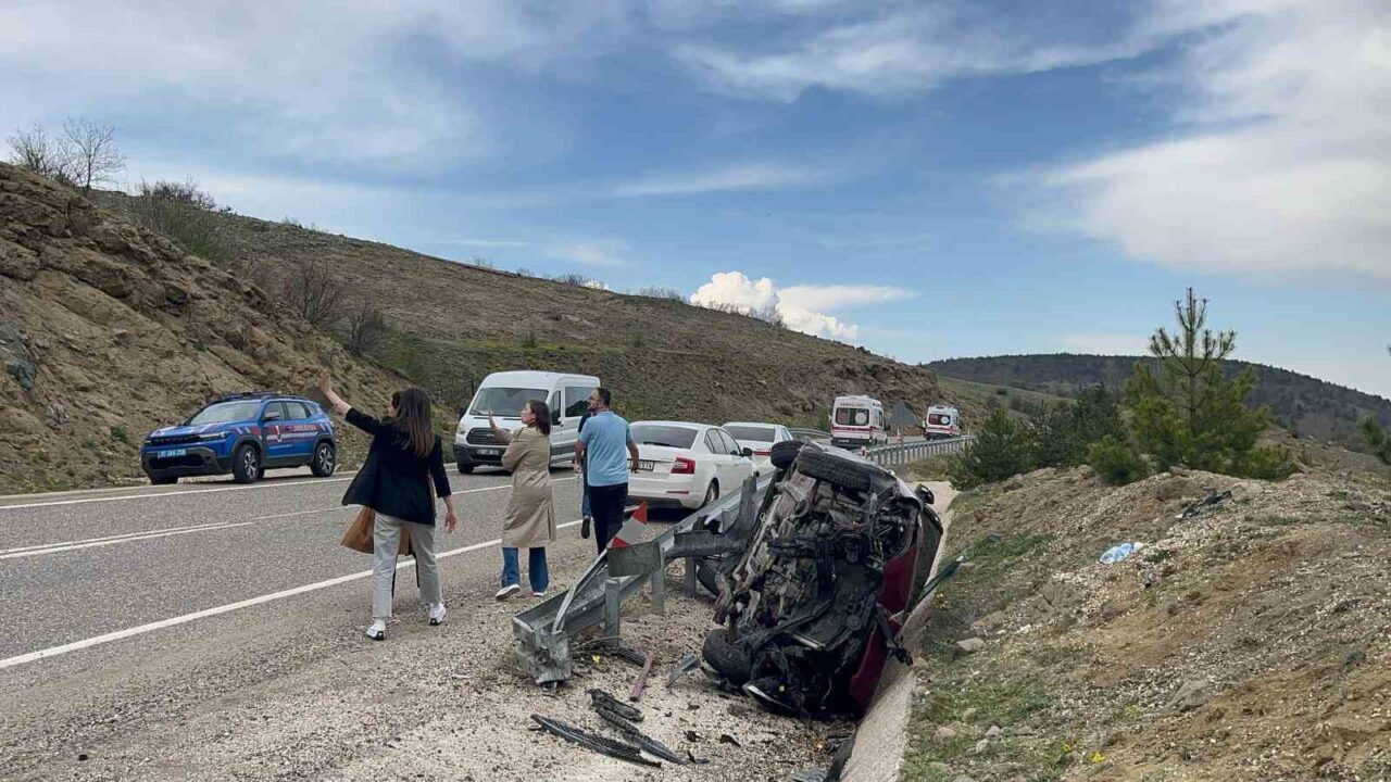 KASTAMONU’DA VİRAJI ALAMAYAN OTOMOBİLİN ŞARAMPOLE DEVRİLDİĞİ KAZADA 3 KİŞİ YARALANDI.
