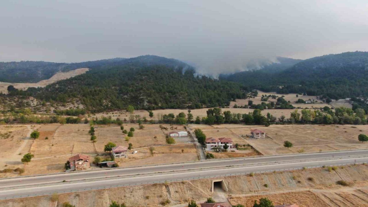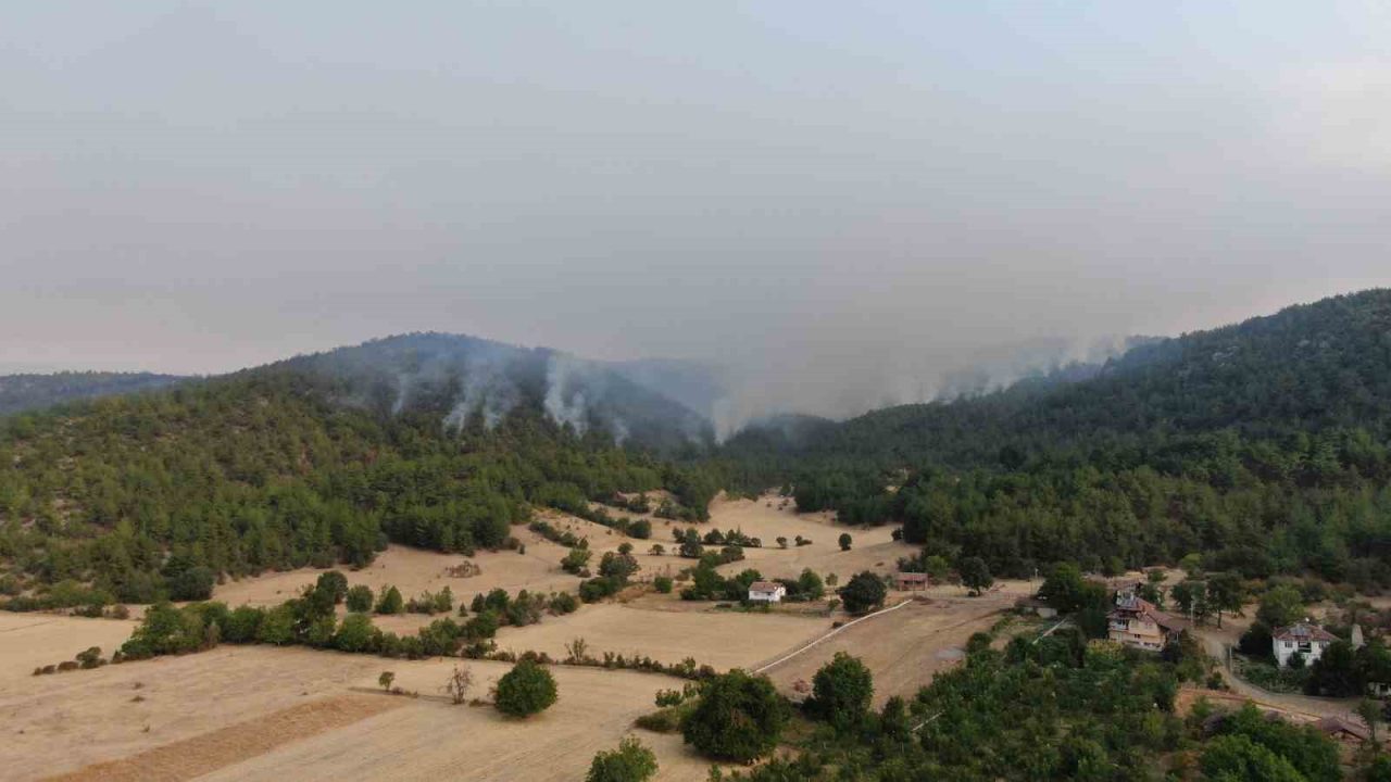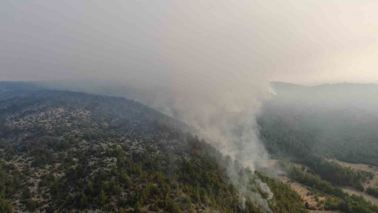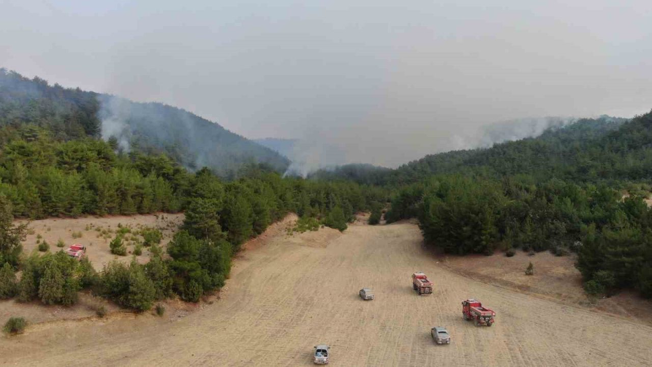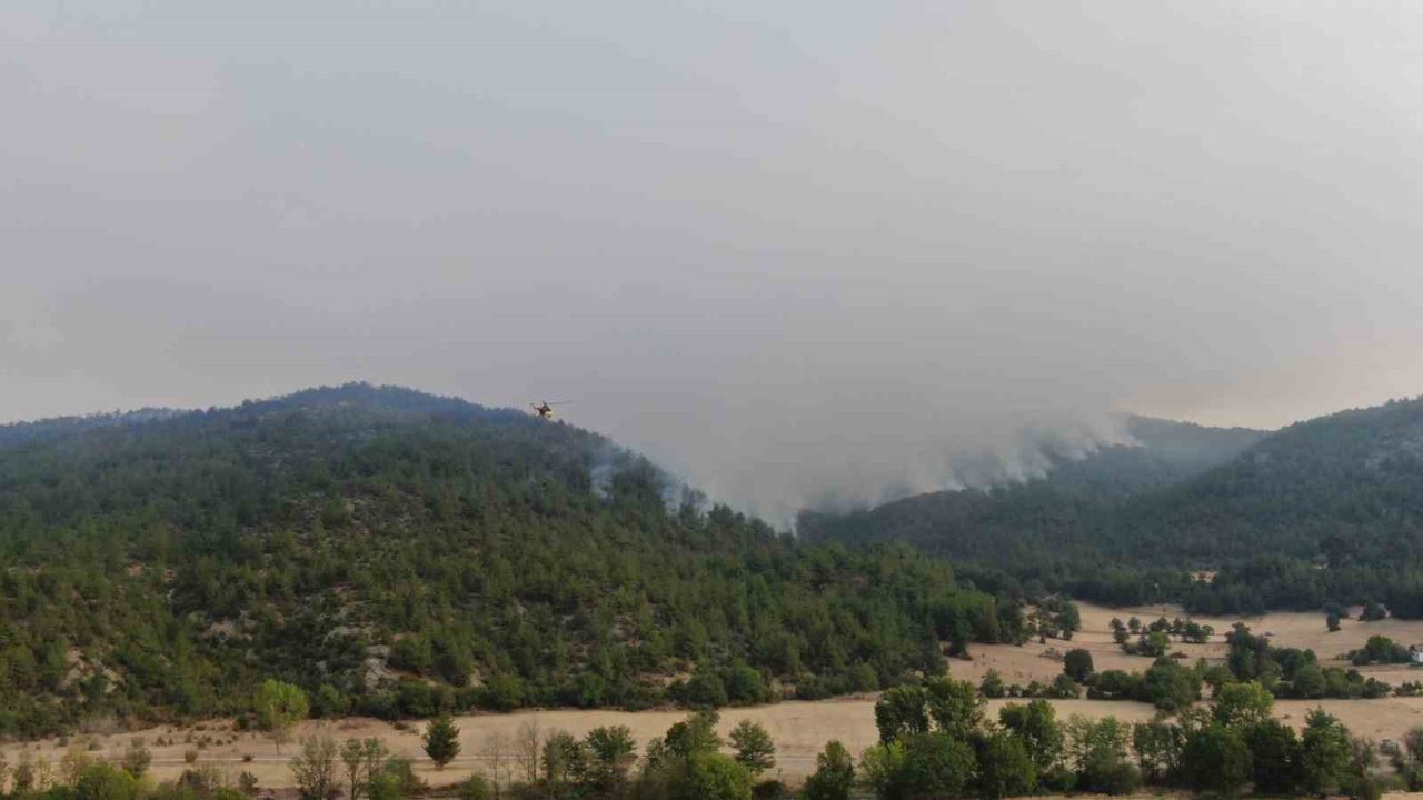 Bölgedeki ekipler, yangına çok sayıda arazöz ve helikopterle müdahale ediyor.