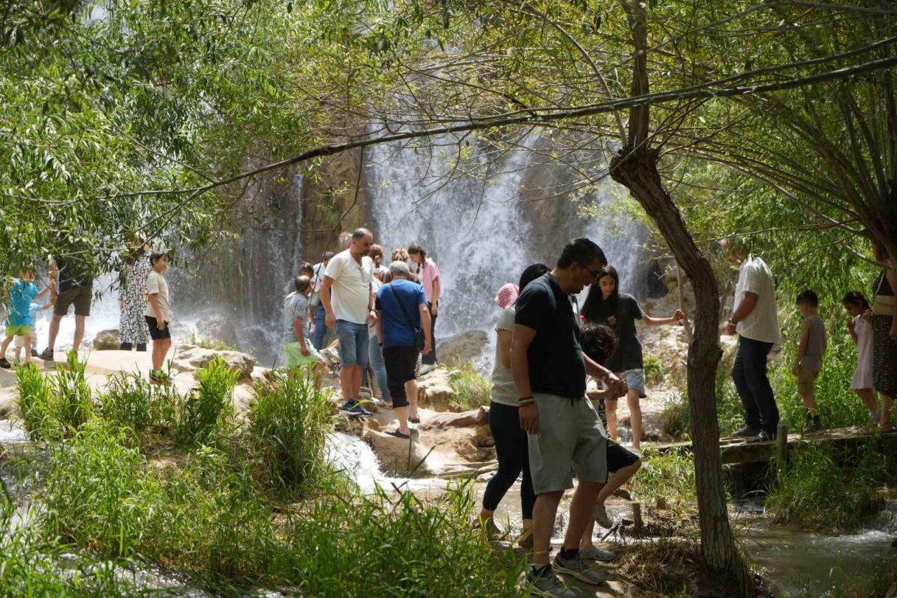 Kavurucu sıcakların yaşandığı bugünlerde şehrin stresinden ve gürültüsünden uzaklaşıp serin yerlerde vakit geçirmek isteyen ziyaretçiler, yeşil örtüsü ve doğal güzelliğiyle öne çıkan şelalede yoğunluk oluşturuyor.