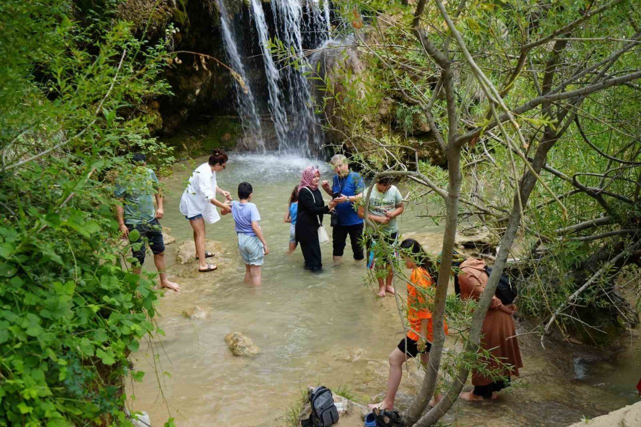 Aileleriyle piknik yapıp alanda vakit geçirenler, şelalenin serin esintisinde suya girip bu güzel manzarada hatıra fotoğrafı çektiriyor.
