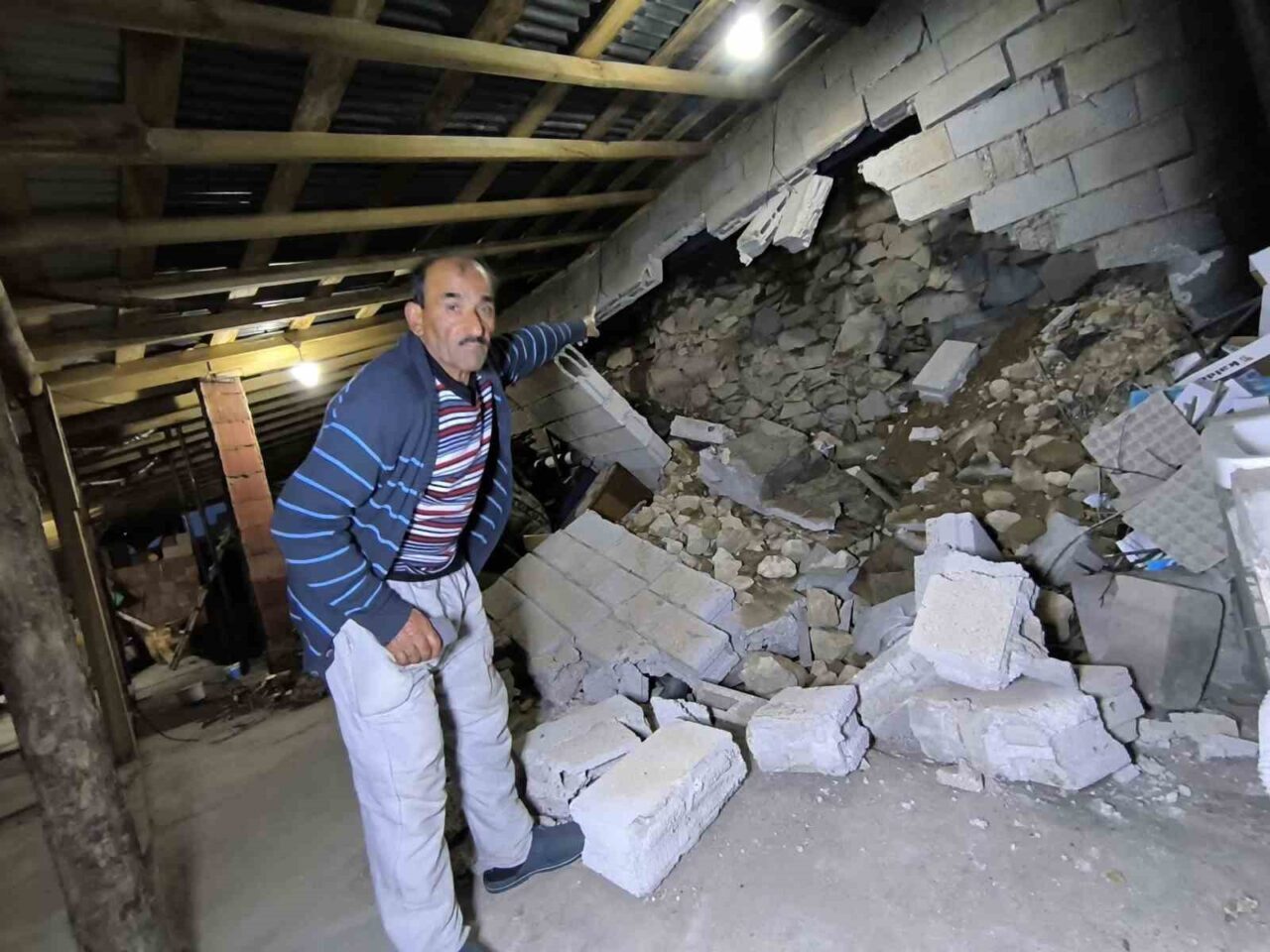 Büyük bir gürültü ve sarsıntı hisseden ev sahipleri, panikle dışarı çıktı. Olay sırasında evde bulunan anne ve engelli kızı, can havliyle kendilerini dışarı attı. Çatı katından içeri giren kaya parçaları, evin tuğla ve briket duvarlarını yıkarak hasara yol açtı. Kaya parçalarının yıktığı evin tavanının delinmesine ise ramak kaldı.