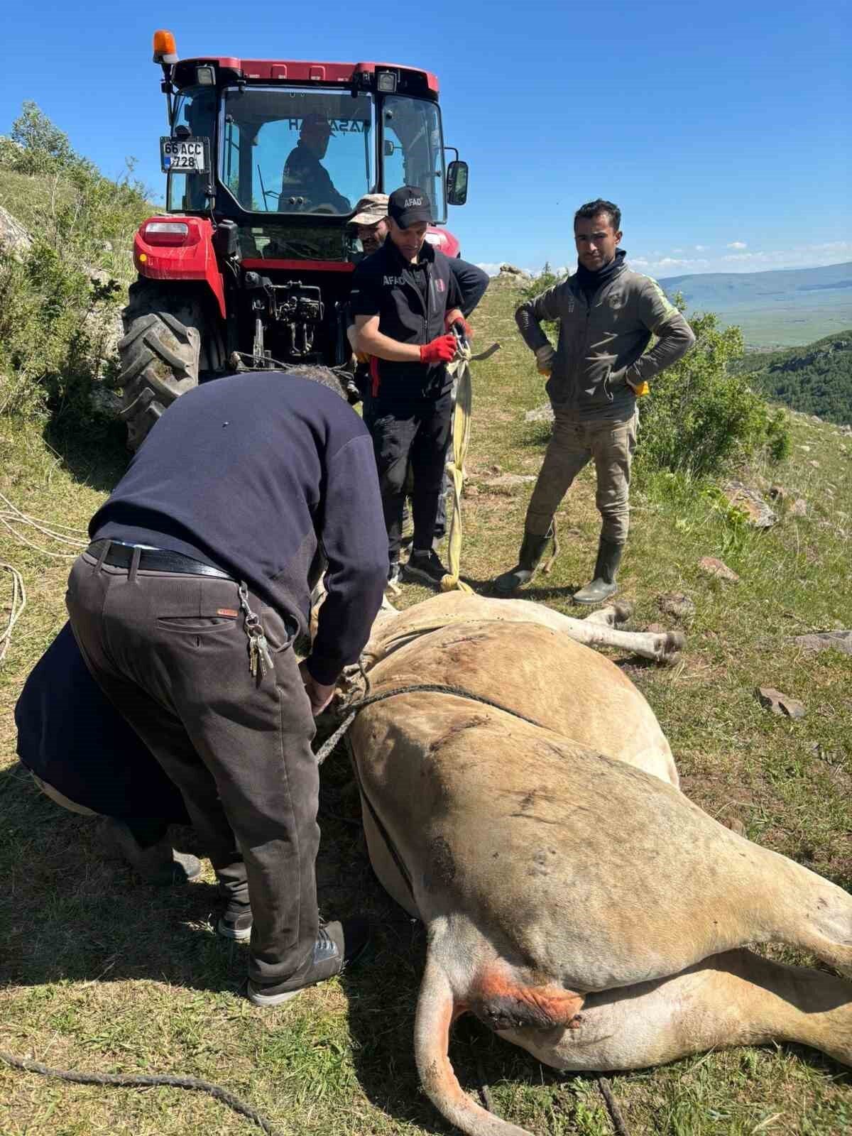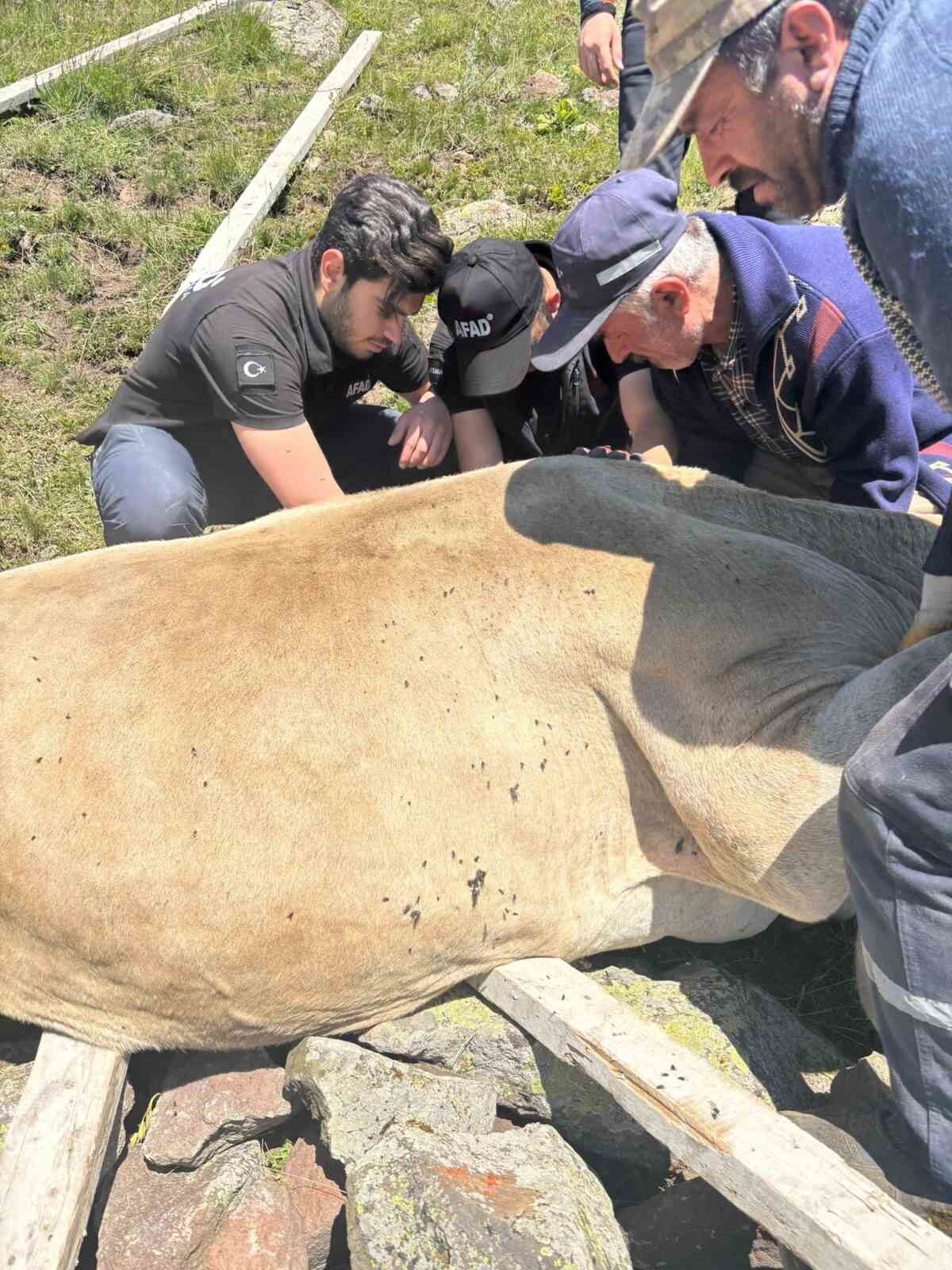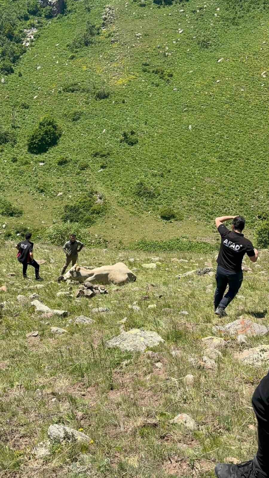 AFAD İl Müdürlüğü ekipleri, ineği halat yardımıyla 1 saatlik çalışma sonucu kurtarıp sahibine teslim etti.