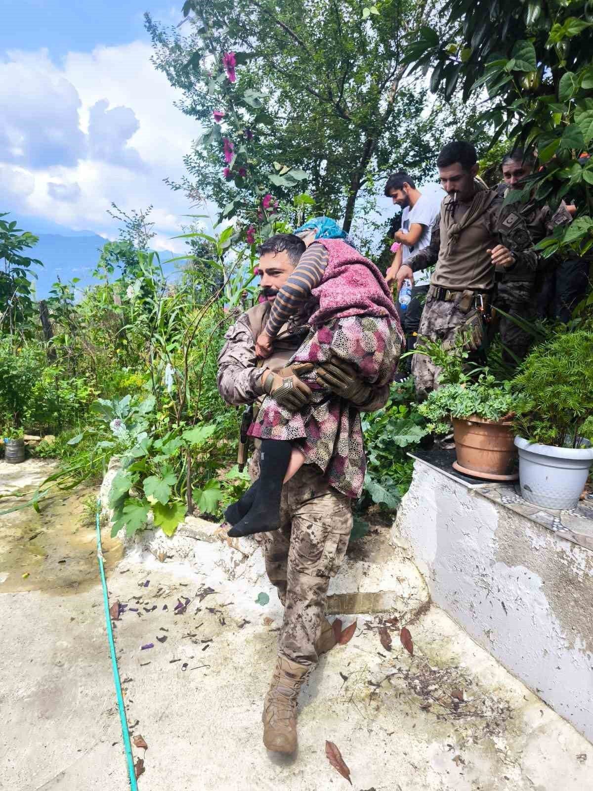 Geceyi fındık bahçesinde uyuyarak geçiren Aydın, PÖH ekipleri tarafından sağ olarak bulundu. Yorgun düşen yaşlı kadın, ekipler tarafından sırtında taşınarak sağlık ekiplerine teslim edildi.