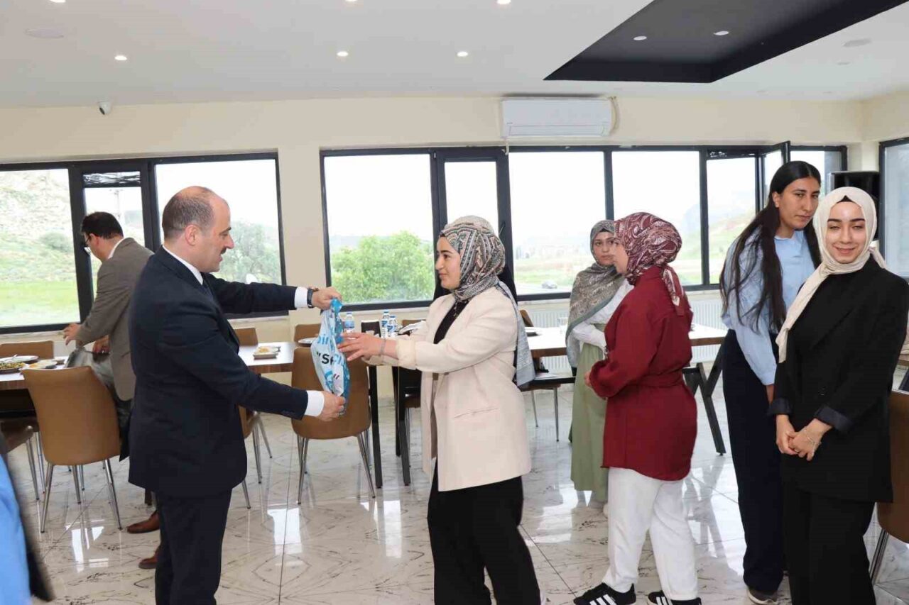 KYK yurtlarında manevi danışmanlık hizmeti alan öğrencilerle düzenlenen bu özel buluşmada, gençlerin dini eğitim yolculuğundaki başarıları takdirle karşılandı. Oltu KYK yurtlarında kalan ve manevi danışmanlık hizmetleri kapsamında Kur’an-ı Kerim okumayı öğrenen öğrenciler, Kaymakam Mustafa Çelik’in davetiyle düzenlenen yemekte ağırlandı. Öğrencilerle tek tek ilgilenen Kaymakam Çelik, Kur’an-ı Kerim okumaya geçen gençleri tebrik ederek başarılarının devamını diledi.