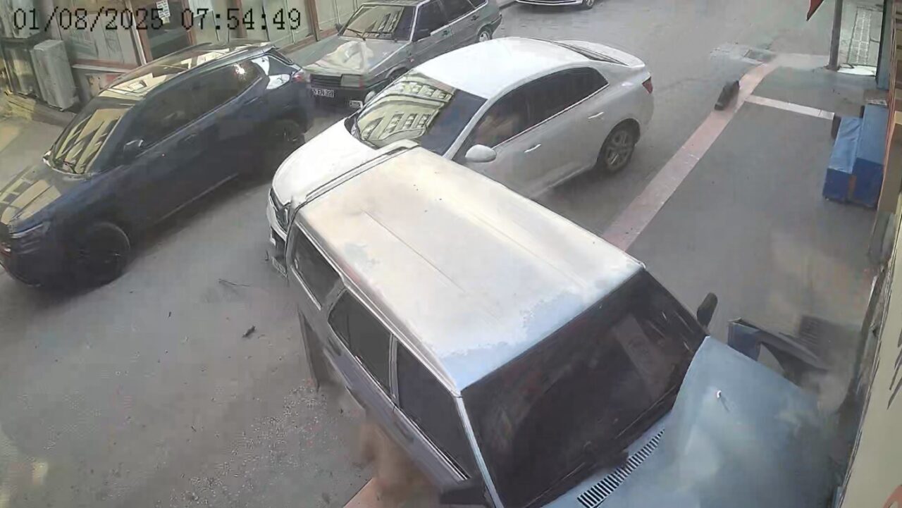 Kaza anı bir iş yerinin güvenlik kamerasına yansıdı. Görüntülerde, 37 ADA 745 plakalı otomobilin önünde seyreden araca arkadan çarptıktan sonra yoluna devam ettiği, Fiat-Tofaş marka aracın ise kontrolden çıkarak iş yerine çarptığı görülüyor.