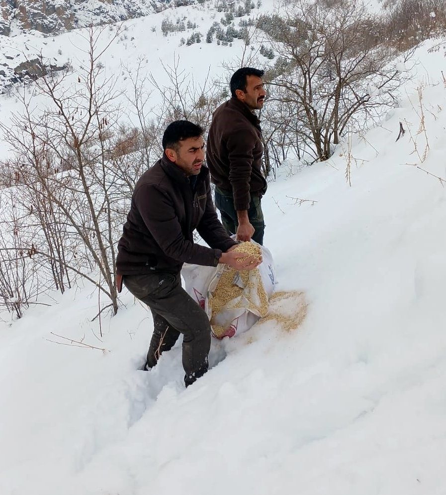 ERZİNCAN’IN KEMAH İLÇESİNDE, AĞIR KIŞ ŞARTLARI NEDENİYLE YİYECEK BULMAKTA ZORLANAN YABAN HAYVANLARI İÇİN DOĞAYA YEM BIRAKILDI