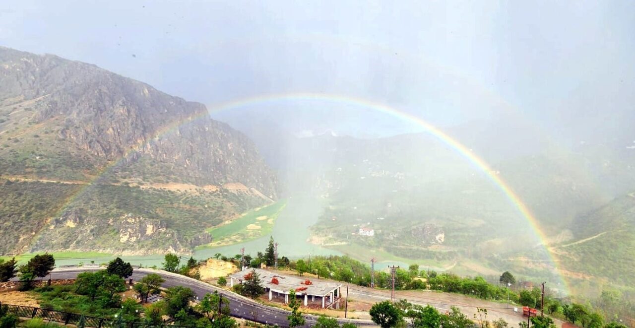 Erzincan’ın Kemaliye ilçesinde yağmurdan sonra ortaya çıkan gökkuşağı görsel şölen oluşturdu.