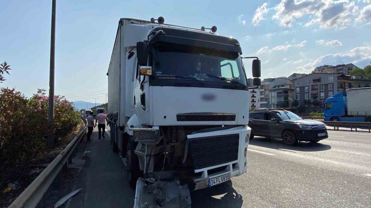Kazaya karışan bir tır sürücüsü, “Önümüzdeki aracın ani fren yapması neticesinde toplam 8 araç kazaya karıştı” dedi.