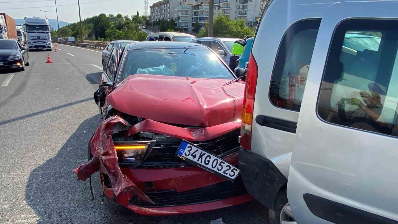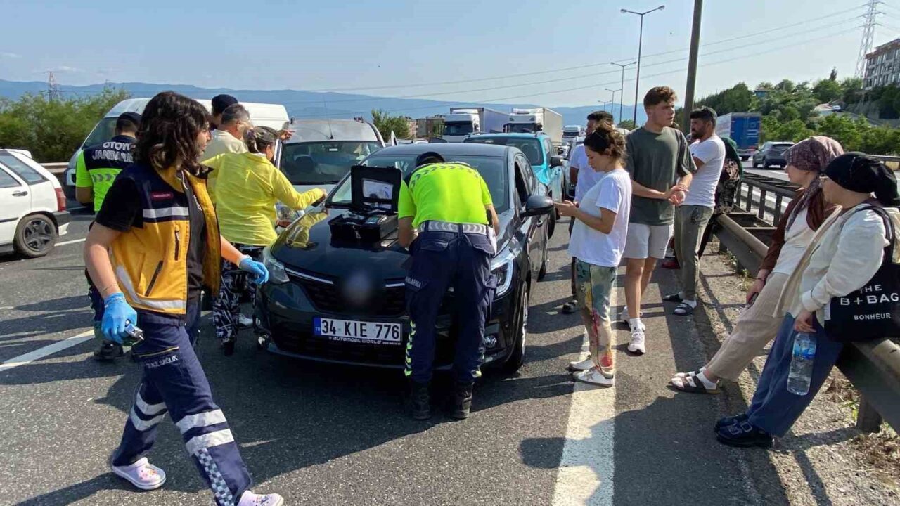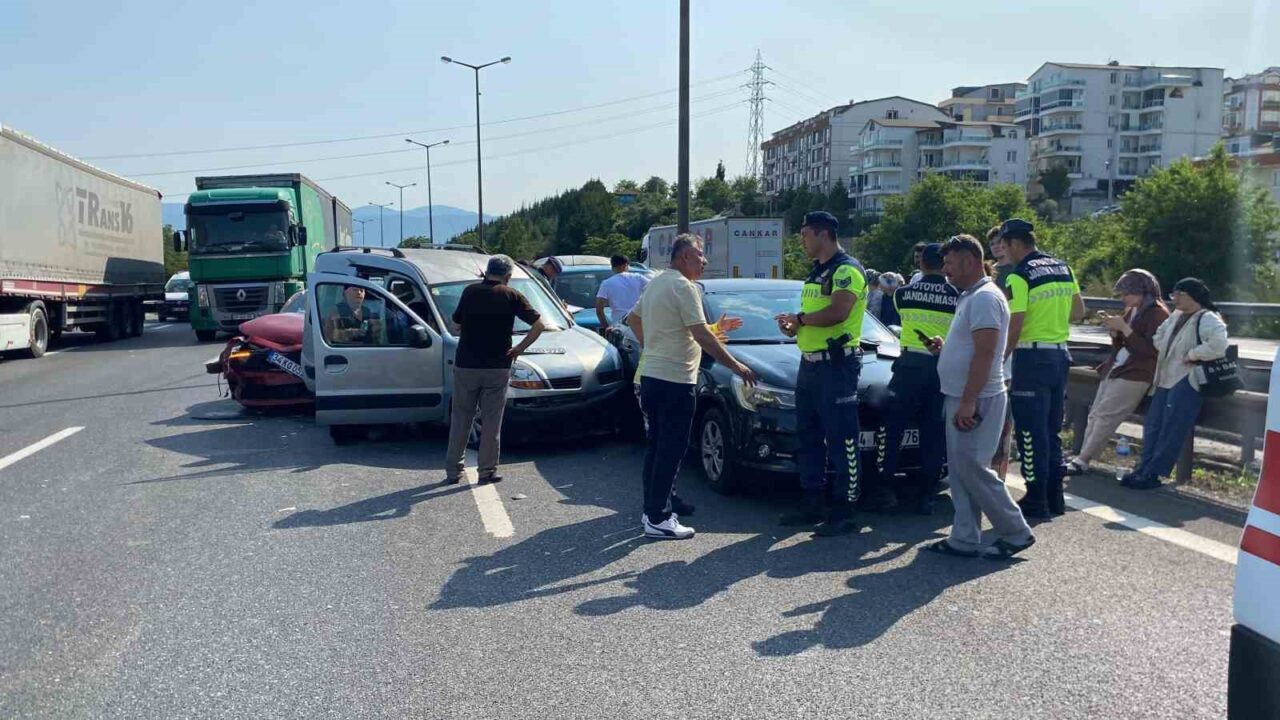 Kocaeli TEM Otoyolu’da 8 aracın karıştığı zincirleme trafik kazasında kimsenin burnu bile kanamadı.