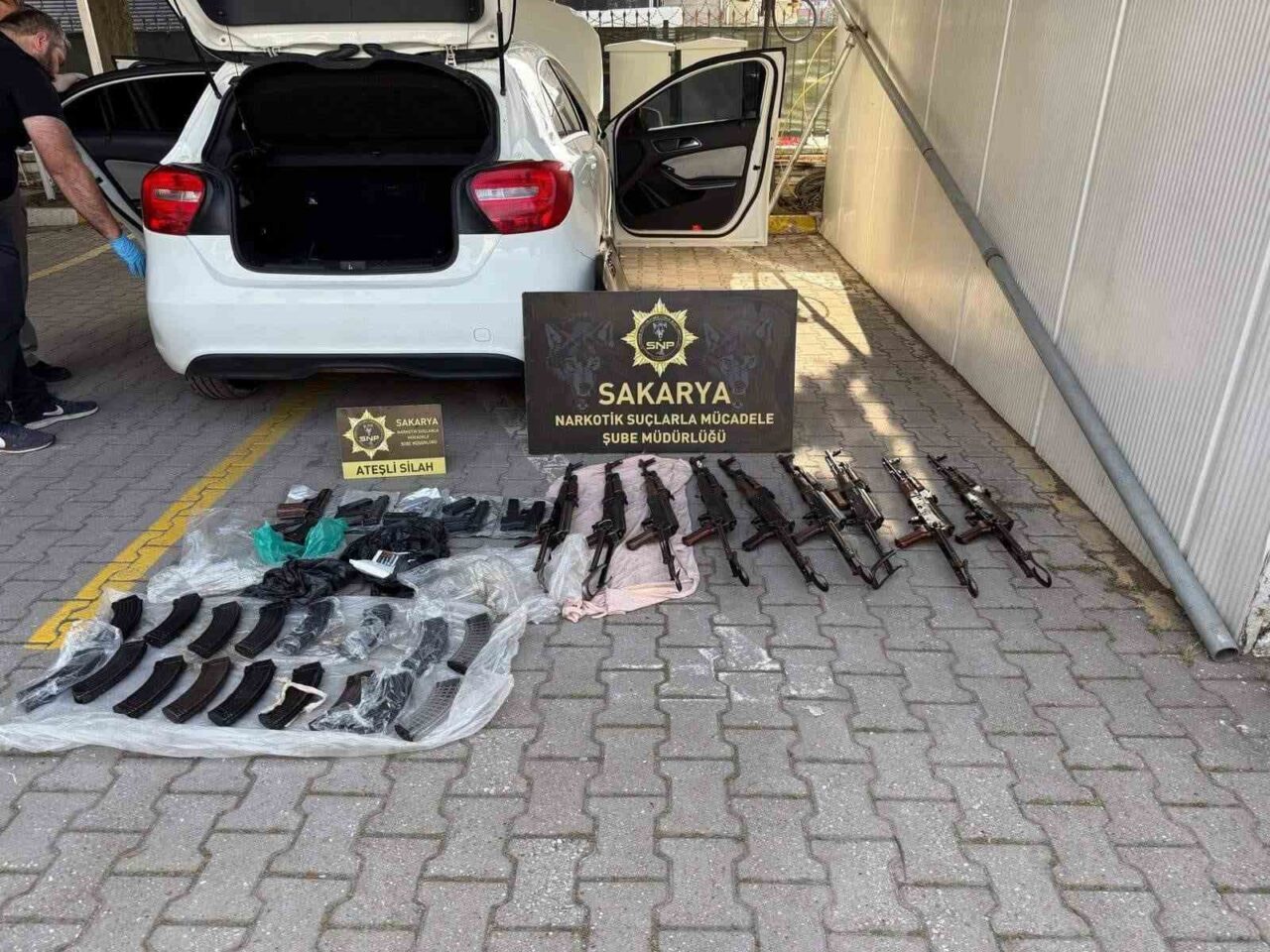 Geçtiğimiz hafta, uyuşturucu madde ticareti ve kullanımının engellenmesine yönelik yapılan analiz çalışmaları çerçevesinde Sakarya Cumhuriyet Başsavcılığının koordinesinde Diyarbakır’dan, İstanbul’a hareket eden ve uyuşturucu madde taşıdığı değerlendirilen kiralık bir otomobil, Sakarya İl Emniyet Müdürlüğü ekiplerince takibe alındı. Anadolu Otoyolu üzerinde gerçekleştirilen operasyon neticesinde otomobil durduruldu. Otomobil sürücüsünün Diyarbakır Emniyet Müdürlüğü’nde görev yapan polis memuru M.A.K. olduğu tespit edildi. Araç içerisinde yapılan aramalarda ise 9 adet AK-47 kalaşnikof tüfek, 17 adet kalaşnikof şarjörü, 5 adet ruhsatsız tabanca, 8 adet tabanca şarjörü, 45 adet kalaşnikof mermisi ve 32 adette tabanca mermisi ele geçirildi.