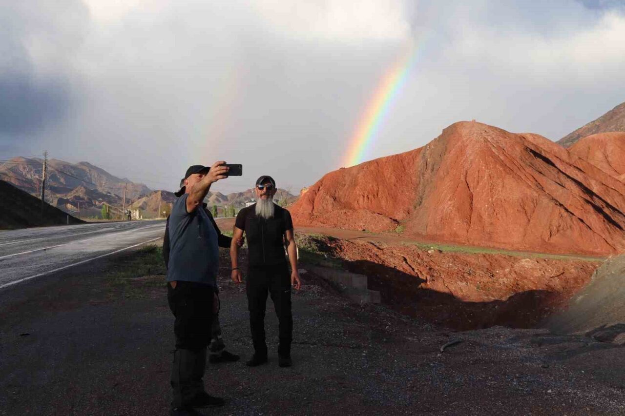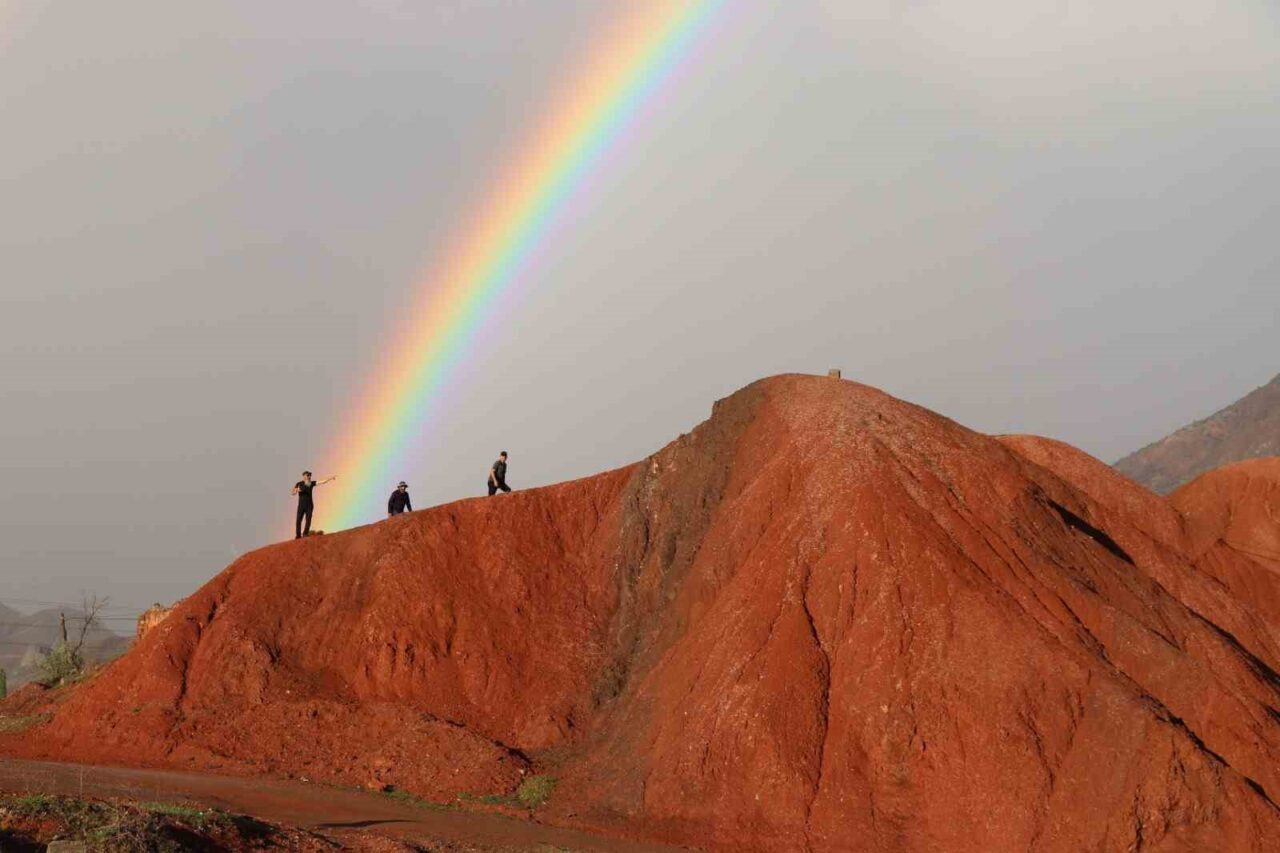 Erzurum’un Oltu ilçesinde etkili olan yağmurun ardından Yolboyu Mahallesi’nde bulunan Kırmızı Tepeler, gökkuşağı ile birlikte adeta görsel bir şölen sundu.