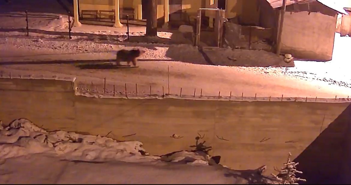 Kop köyü merkezindeki ayının yiyecek aradığı anlar, cami güvenlik kamerasına yansıdı. Görüntülerde, ayının gece saatlerinde yerleşim alanı içinde dolaştığı görüldü.