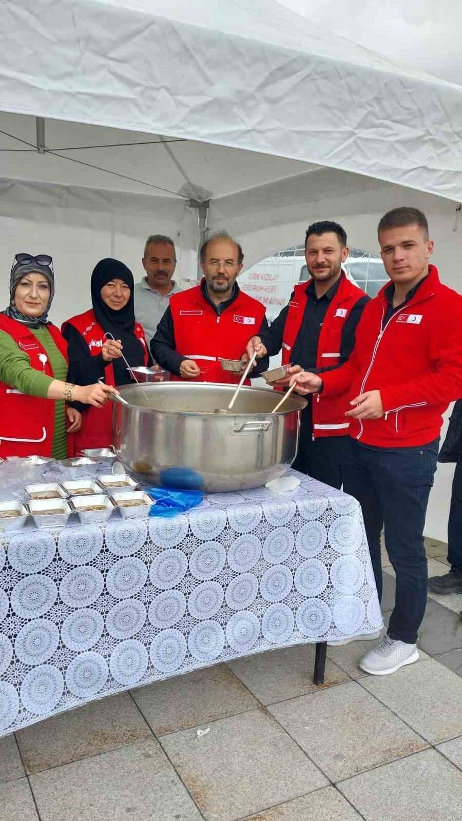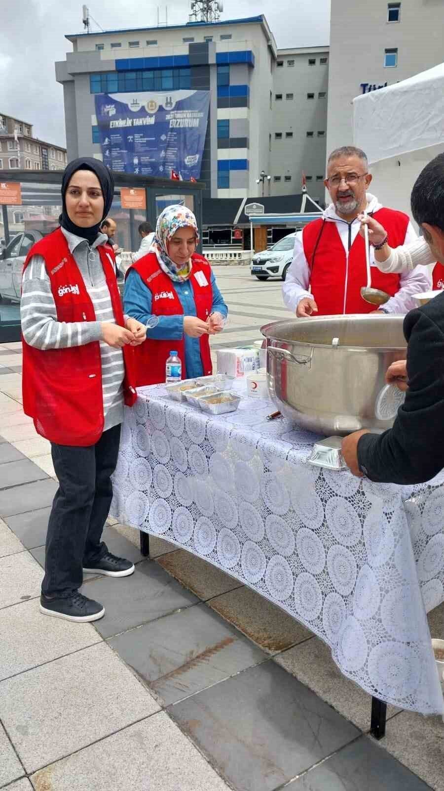 Erzurum’da Kızılay, Muharrem Ayı vesilesiyle Havuzbaşı Kent Meydanı’nda vatandaşlara aşure dağıttı.
