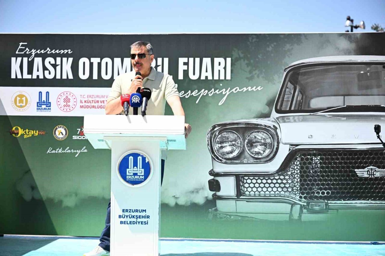 Erzurum Valisi Mustafa Çiftçi, açılış töreninde yaptığı konuşmada, “Malumlarınız bu sene Erzurum, Avrupa kış sporları başkenti ve Ekonomik İşbirliği Teşkilatı 2025 turizm başkenti. Bu kapsamda 6-12 Ocak tarihlerinde kış oyunlarıyla başlayan etkinliklerimiz bütün hızıyla devam ediyor. Bugüne kadar toplamda 34 tane etkinlik düzenledik. Bu ay içerisinde Ağustos ayı içerisinde inşallah 10 tane etkinliğimiz gerçekleşecek. Ve yılın sonuna kadar da yaptığımız etkinliklerin sayısı toplamda 70’i veya daha üzerini bulmuş olacak. Bu ay içerisinde Uluslararası Bisiklet Turnuvası düzenlenecek ilimizde. Bu turizm başkenti etkinlikleri kapsamında yine Ticaret Bakanlığımızın koordinasyonunda yaklaşık 200 kooperatifin katılımıyla kadın kooperatifleri buluşması yine ilimizde gerçekleşmiş olacak. Bu yılın sonuna kadar inşallah bu tür etkinlikleri dolu dolu gerçekleştirmeye, ilimizin tanıtımını sağlamaya, marka değerini arttırmaya gayret edeceğiz. Bugünkü etkinliğimizi de turizm etkinlikleri kapsamında yapmış olduğumuz program programlarımızdan bir tanesi. Bugün şu anda meydanda elli tane klasik otomobil görücüye çıkmış durumda. Beğeniye sunulmuş durumda. Dün de çifte minareli medresenin oradan otuz tane araçla bir şehir turu atmıştık. Bugün de kent meydanında klasik otomobillerin 1950 yılından başlamak suretiyle 1990 yılına kadar değişik dönemlerde kullanılmış olan ve şu anda da hala kullanılmaya devam eden otomobiller, klasik otomobilleri görebileceksiniz. Ben bu programın düzenlenmesinde emeği geçen, buraya kadar teşrif eden, otomobillerini bizlerle buluşturan bütün klasik otomobil severlere teşekkür ediyorum. İnşallah bundan sonra da bu ilk olur. Bundan sonra da devamını temenni ediyorum. Yine bu tür etkinliklerin düzenlenmesinde valiliğimizin, büyükşehir belediye belediyemizin, kültür ve turizm müdürlüğümüzün ve diğer bütün kurumlarımızın, emniyet müdürlüğümüzün gayretleri var, çalışmaları var. Onlara da ayrı ayrı teşekkür ediyorum. Bu tür etkinliklerin ilimizin tanıtımına, ilimizin iç turizminin gelişmesini daha da vesile olmasını diliyor, hepinizi tekrar hürmetle, muhabbetle selamlıyorum” diye konuştu.