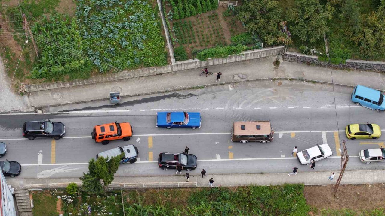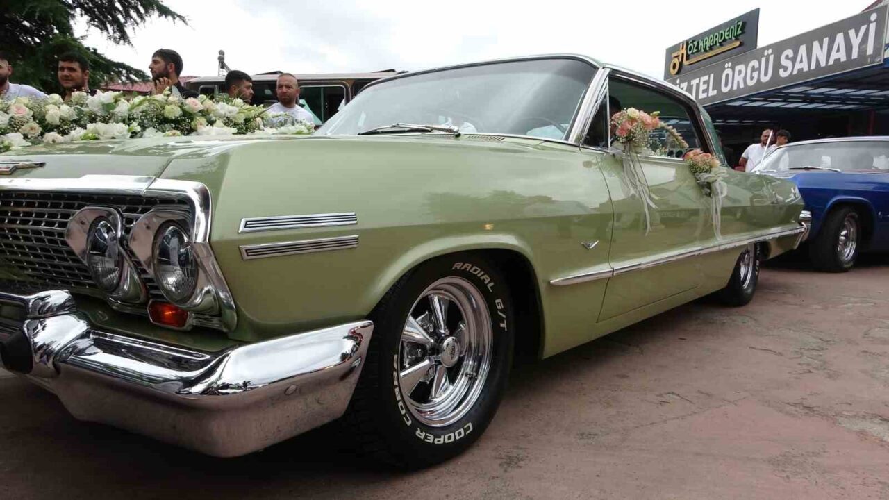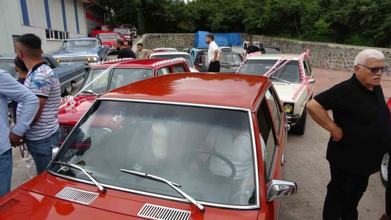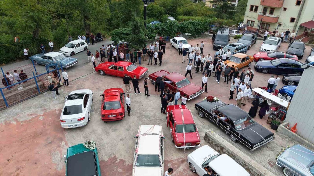 Trabzon’da klasik araçlardan oluşan düğün konvoyu görenleri hayran bıraktı.