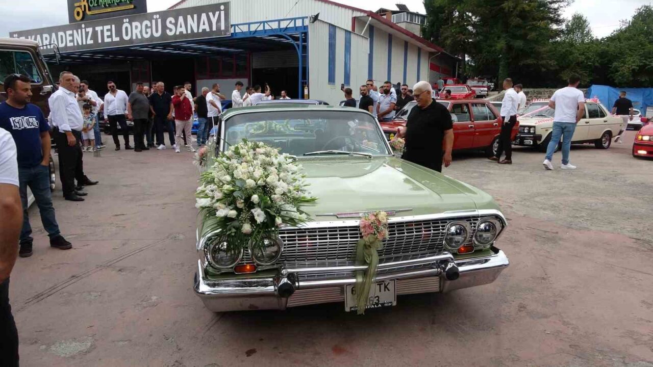 Düğün sebebiyle böyle bir organizasyon düzenlediklerini belirten damat Gökhan Değermenci, “Düğünümüz sebebiyle Türkiye’nin dört bir yanından dostumuz, arkadaşımız klasik araçlarıyla buraya geldi. İstanbul, Ankara, Kayseri, Balıkesir ve tüm Karadeniz Bölgesi’nden araçlar olmak üzere geniş bir topluluk şu anda burada. Klasik otomobil çocukluğumdan beri benim için var olan bir tutku. Yaklaşık 10 adet kendimize ait klasik otomobilimiz var. İmpala’lar, Magirus’lar ve Tofaş grubu araçlarımız mevut. Burada şu an sayamayacağım kadar araç var. Gelen tüm dostlarımın hepsinin ayağına sağlık” dedi.