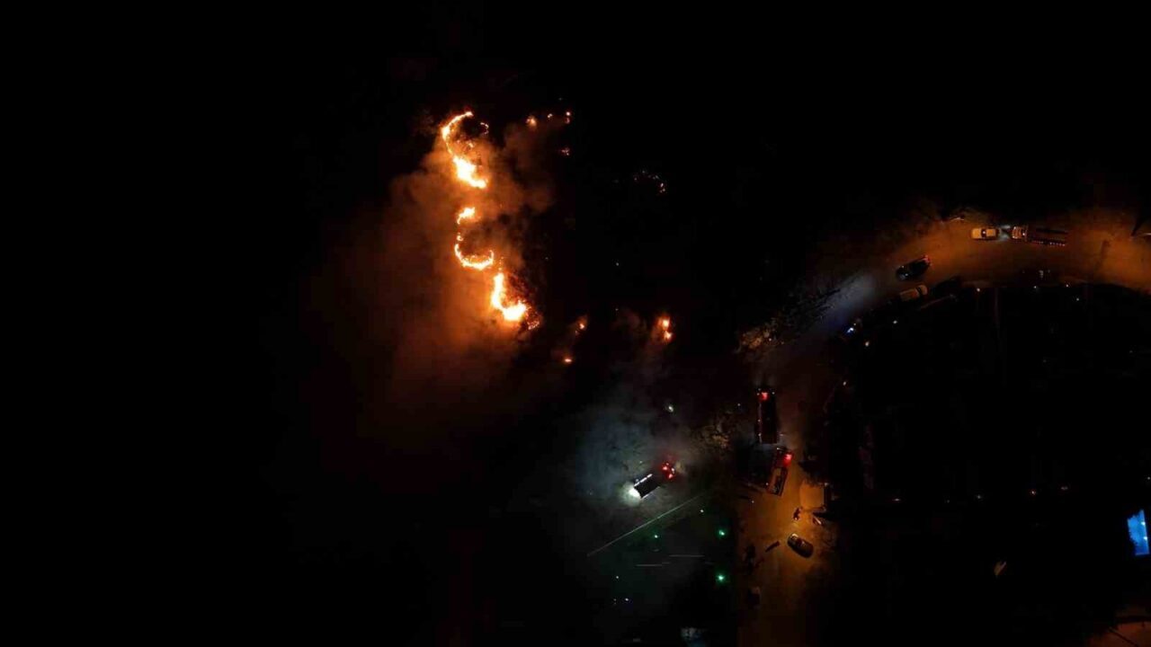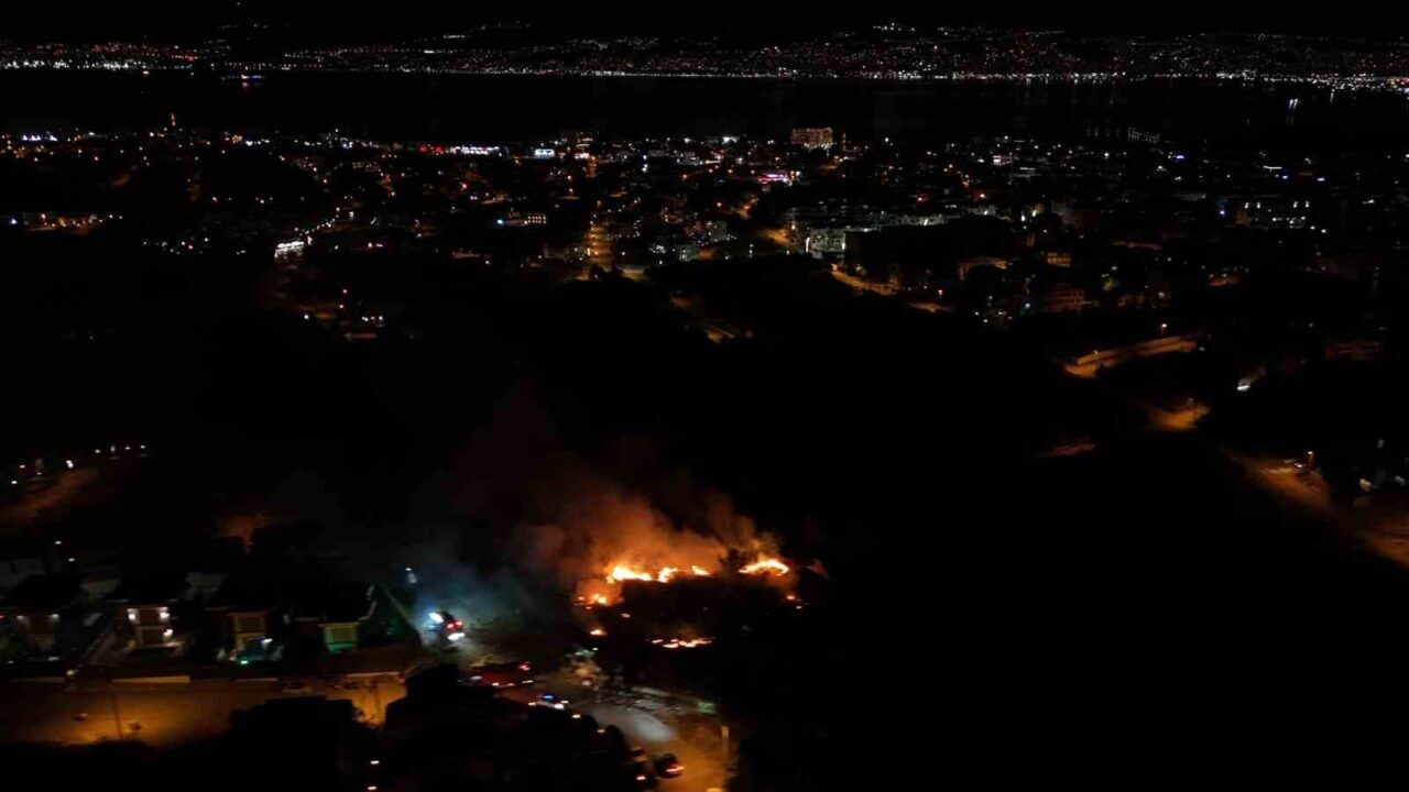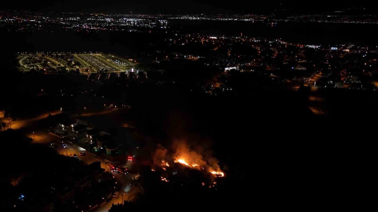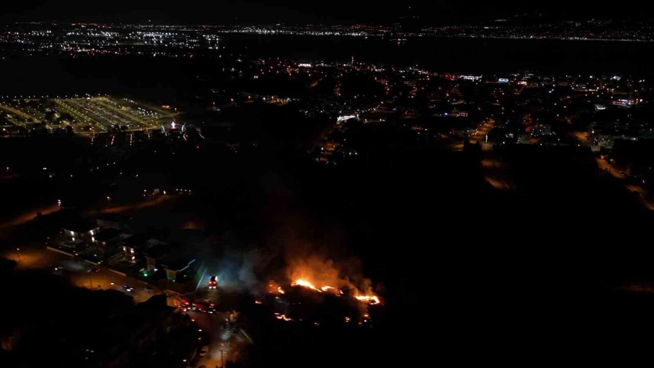 Kocaeli’nin Başiskele ilçesinde gece saatlerinde yerleşim yerlerine yakın noktada çıkan yangının alevleri geceyi aydınlattı. Çalılık alanda çıkan yangın, ekiplerin müdahalesiyle kontrol altına alınırken alevler havadan görüntülendi.