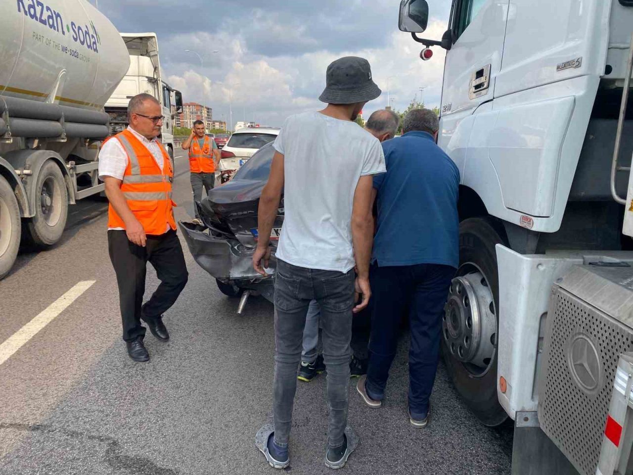 Kocaeli TEM Otoyolu’nda bir tır ve 3 otomobilin karıştığı zincirleme kazada şans eseri yaralanan olmadı. Araçlarda maddi hasar oluşurken, kaza sebebiyle trafikte yoğunluk oluştu.