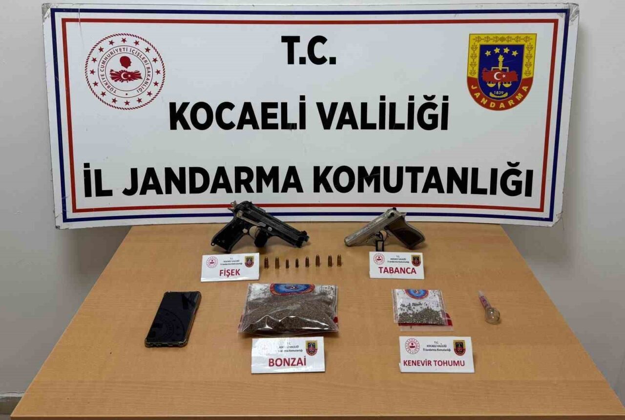 Kocaeli İl Jandarma Komutanlığı sorumluluk bölgesinde uyuşturucu ticaretinin engellenmesine yönelik çalışmalarına devam ediyor. Bu çerçevede KOM Şube Müdürlüğü ve Narkotik Suçlar ile Mücadele ekiplerince İzmit ilçesinde uyuşturucu satıcılarına yönelik 5 adrese eş zamanlı operasyon düzenlendi. Operasyonda; 1 kilo 500 gram bonzai, 4 kök kenevir bitkisi, 1 sentetik ecza, 2 ruhsatsız tabanca ve 1 hassas terazi ele geçirildi. Tespit edilen 5 şüpheliden 3’ü yakalanarak gözaltına alındı. İşlemleri sonrasında adli mercilere sevk edilen şüphelilerden 2’si tutuklanarak cezaevine gönderilirken, 1’i ise adli kontrol şartı ile serbest kaldı. Diğer iki şüphelinin ise yakalama çalışmalarının sürdüğü öğrenildi.