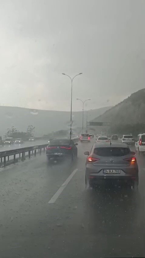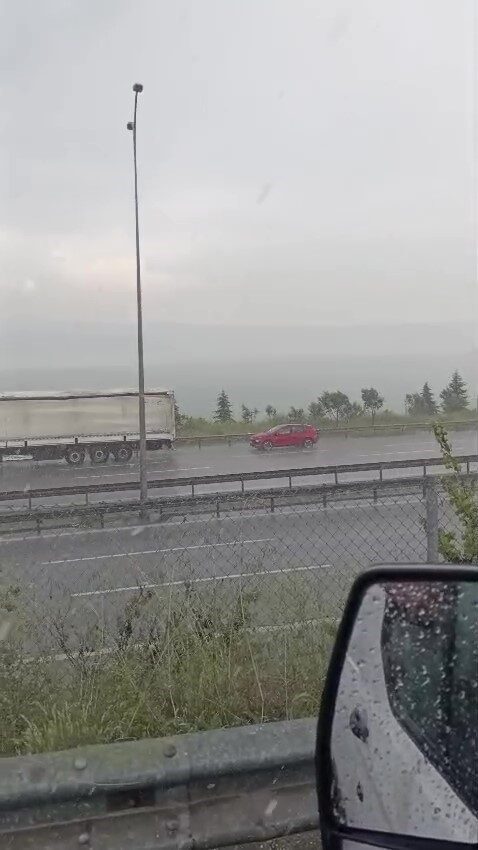 Kocaeli’de etkili olan dolu ve sağanak yağış sebebiyle sürücülere zor anlar yaşadı.