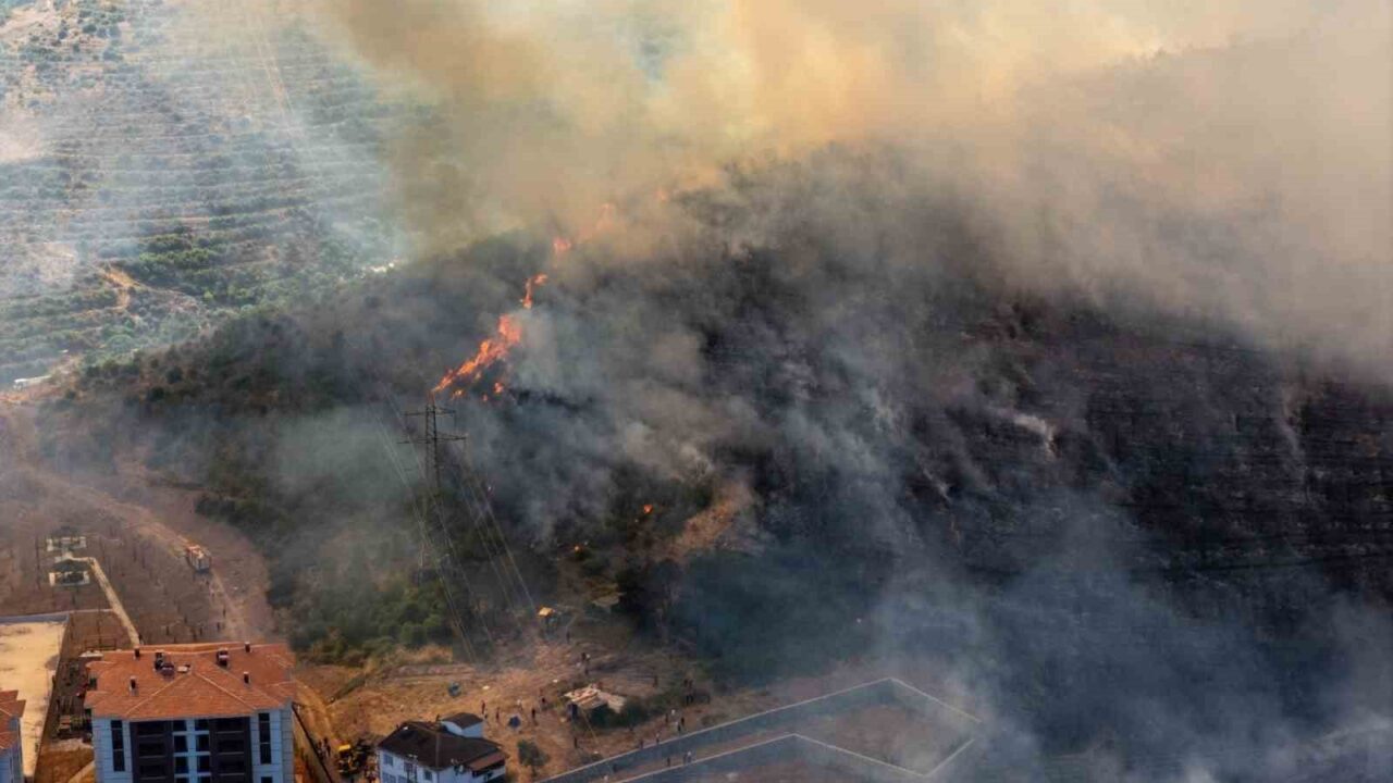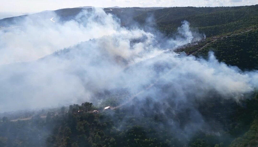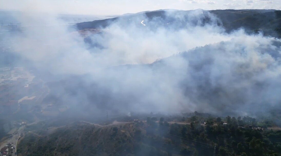 Kocaeli’nin Derince ilçesinde ilçesinde devam eden orman yangını havadan görüntülendi.