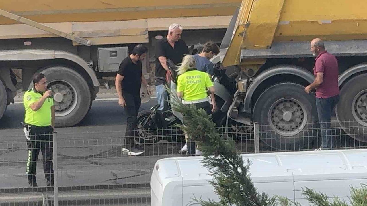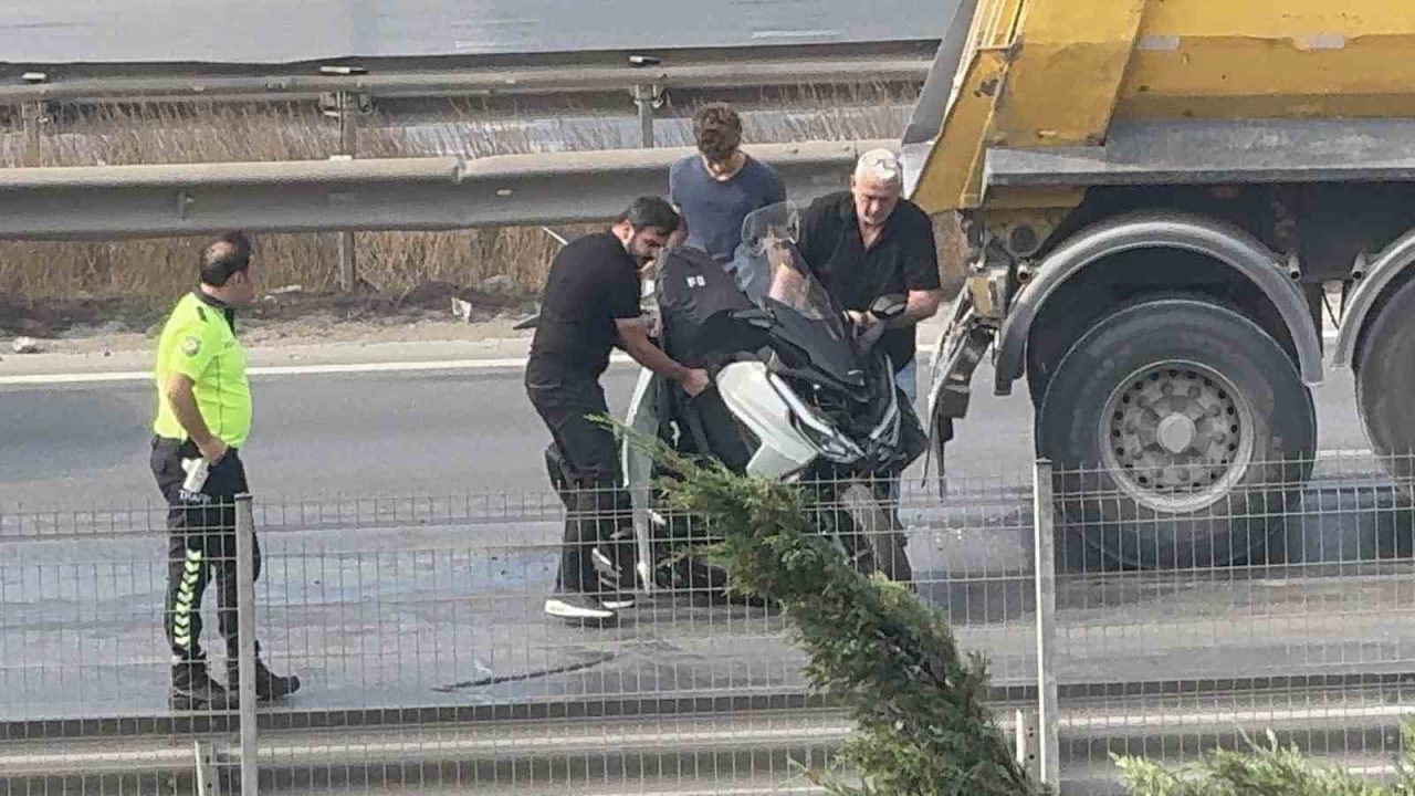 Kocaeli D100 Karayolu’nda hafriyat kamyonu ile otomobil arasında sıkışan motosiklet sürücüsü, vatandaşlar tarafından kurtarıldı. Yaralı sürücü hastaneye kaldırılırken, kazaya karışan motosiklet kamyona saplandı.
