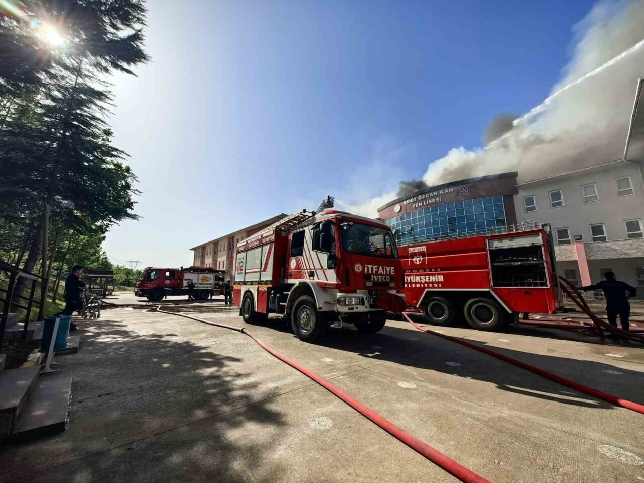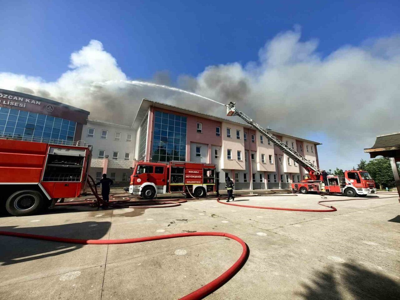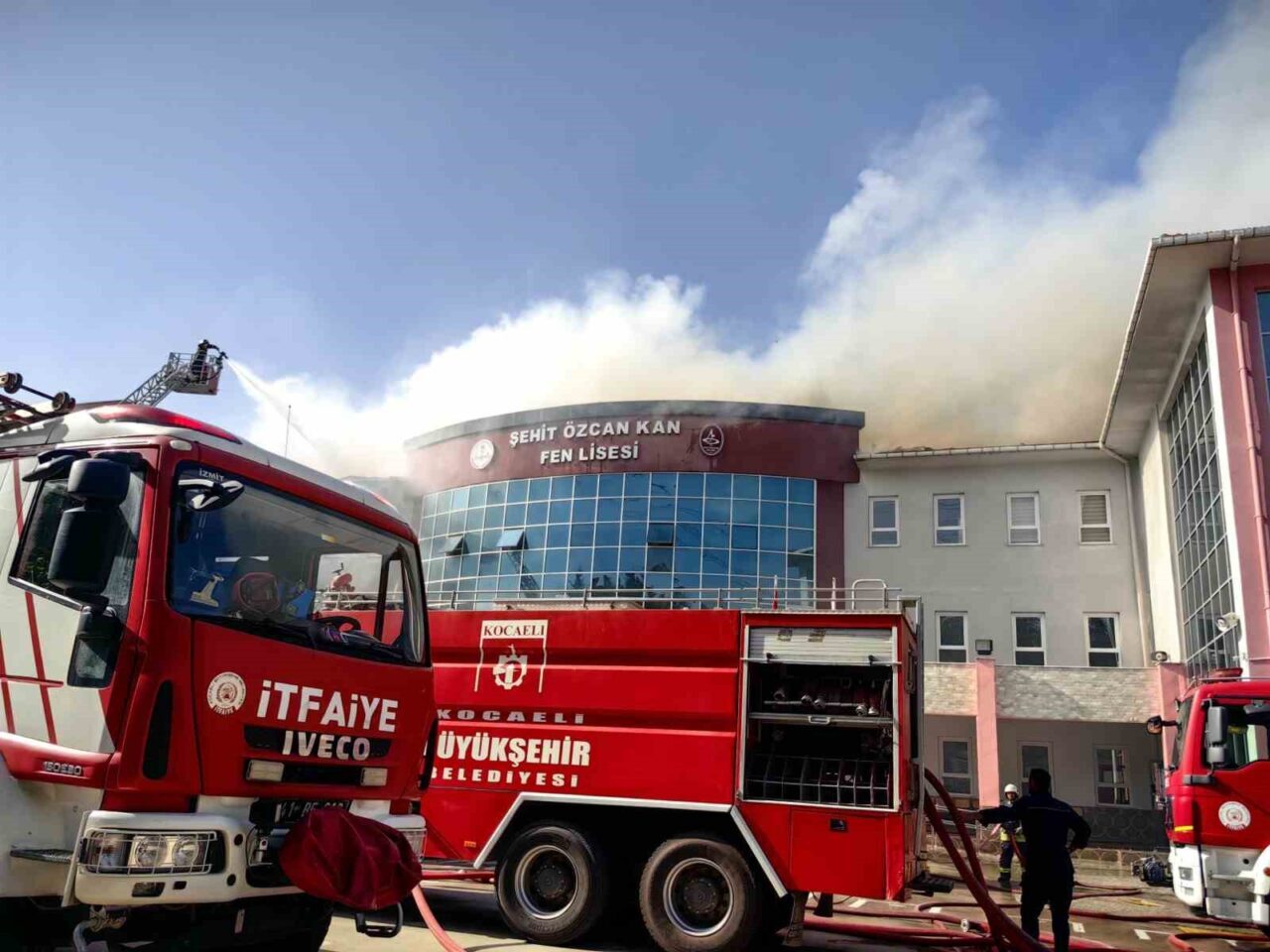 Yangın, İzmit ilçesi Gündoğdu Mahallesi’nde bulunan Şehit Özcan Kan Fen Lisesi’nde çıktı. Henüz bilinmeyen bir sebeple okulun çatısında çıkan yangın kısa sürede büyüdü. Yükselen alevleri gören vatandaşların ihbarı üzerine bölgeye çok sayıda sağlık, itfaiye ve polis ekibi sevk edildi. Yangın esnasında okulda bulunan öğrenciler, öğretmenlerin de yönlendirmesi ile hızla tahliye ediliyor. Yangına müdahale sürüyor.