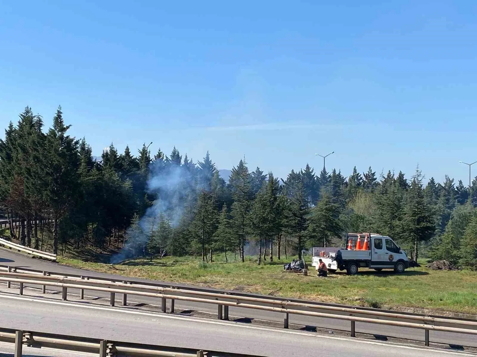 Kocaeli’de Karayolları Bölge Müdürlüğü ekipleri, TEM Otoyolu Körfez ilçesinde budama yaptıkları ağaç dallarını 5 gündür yakarken vatandaşlar duruma tepki gösterdi.