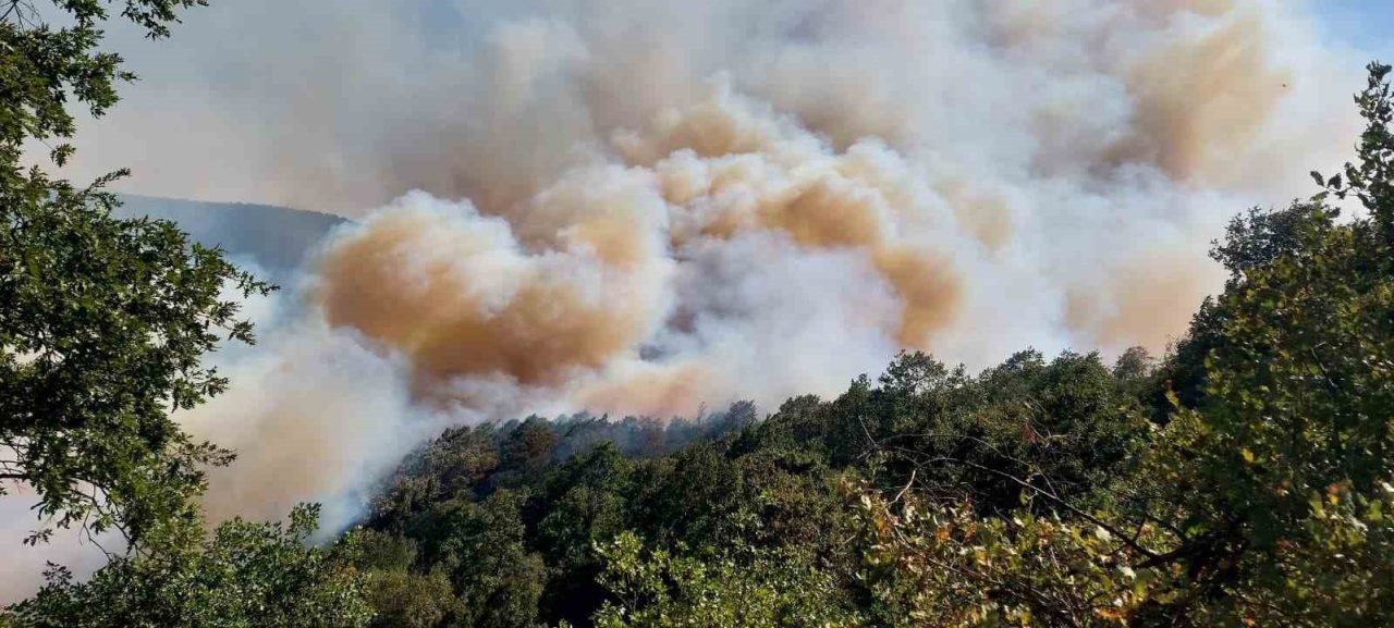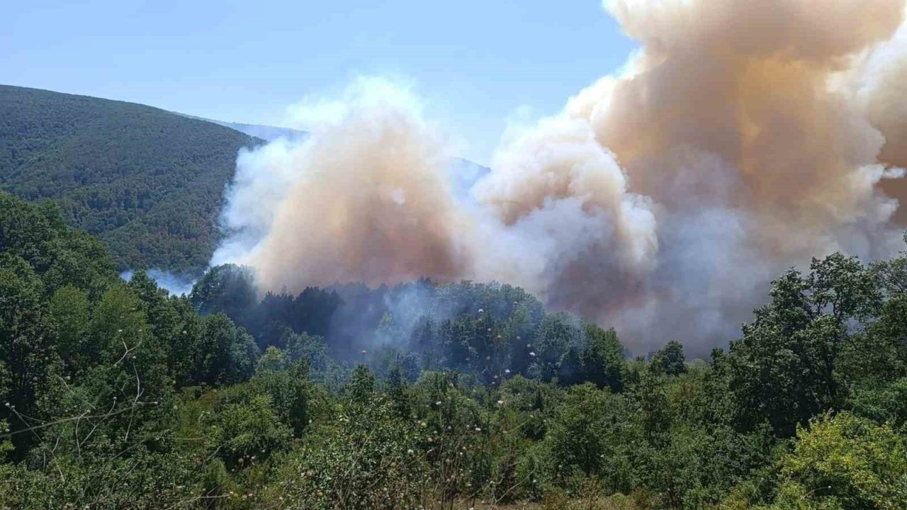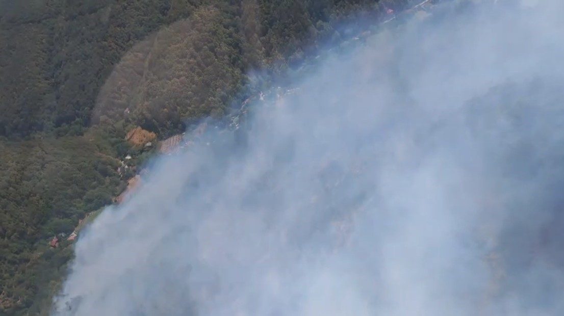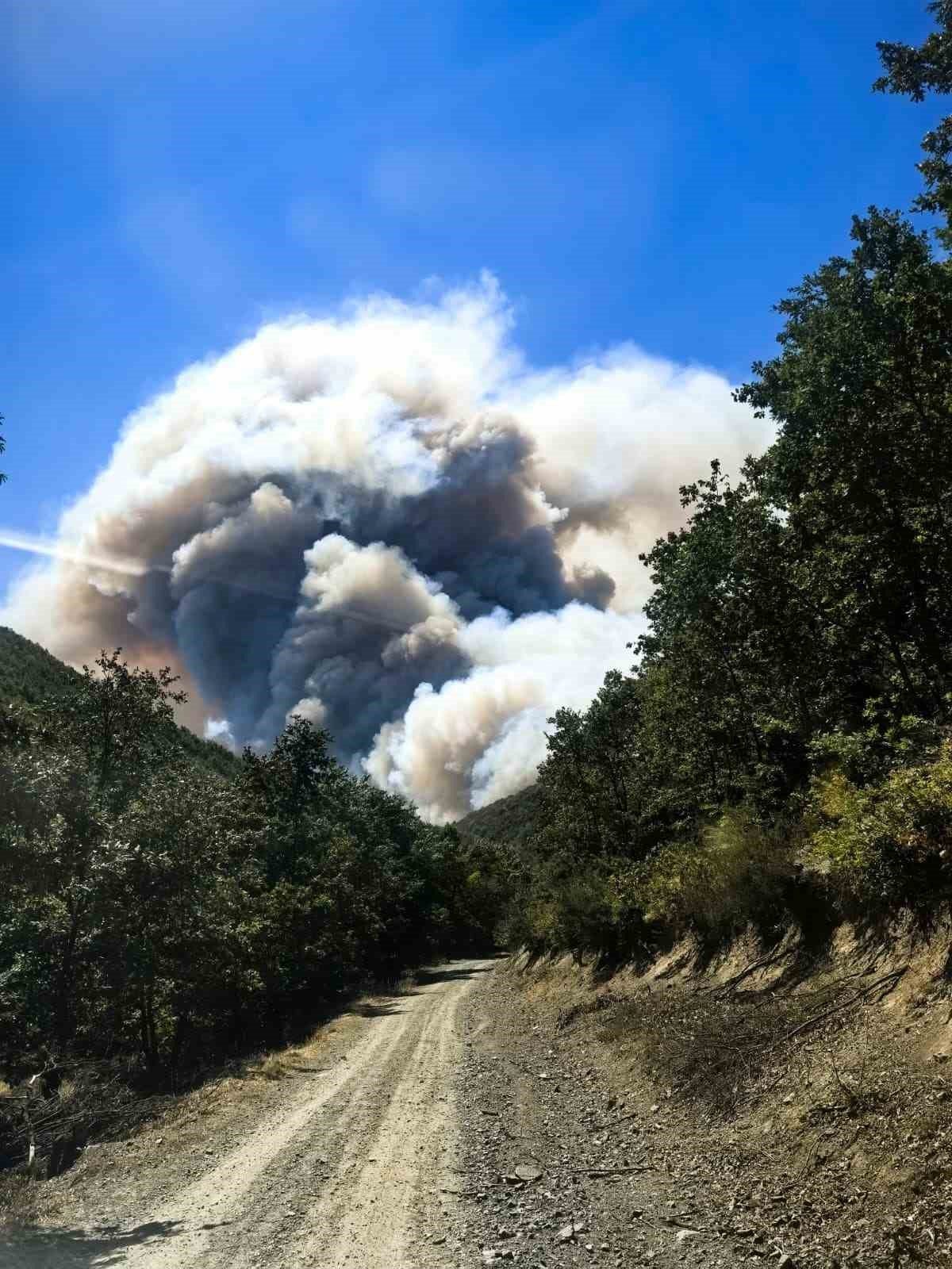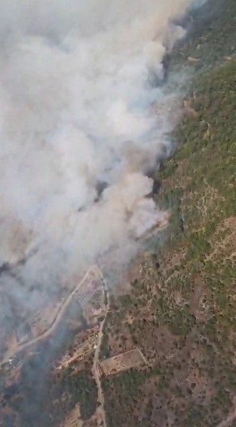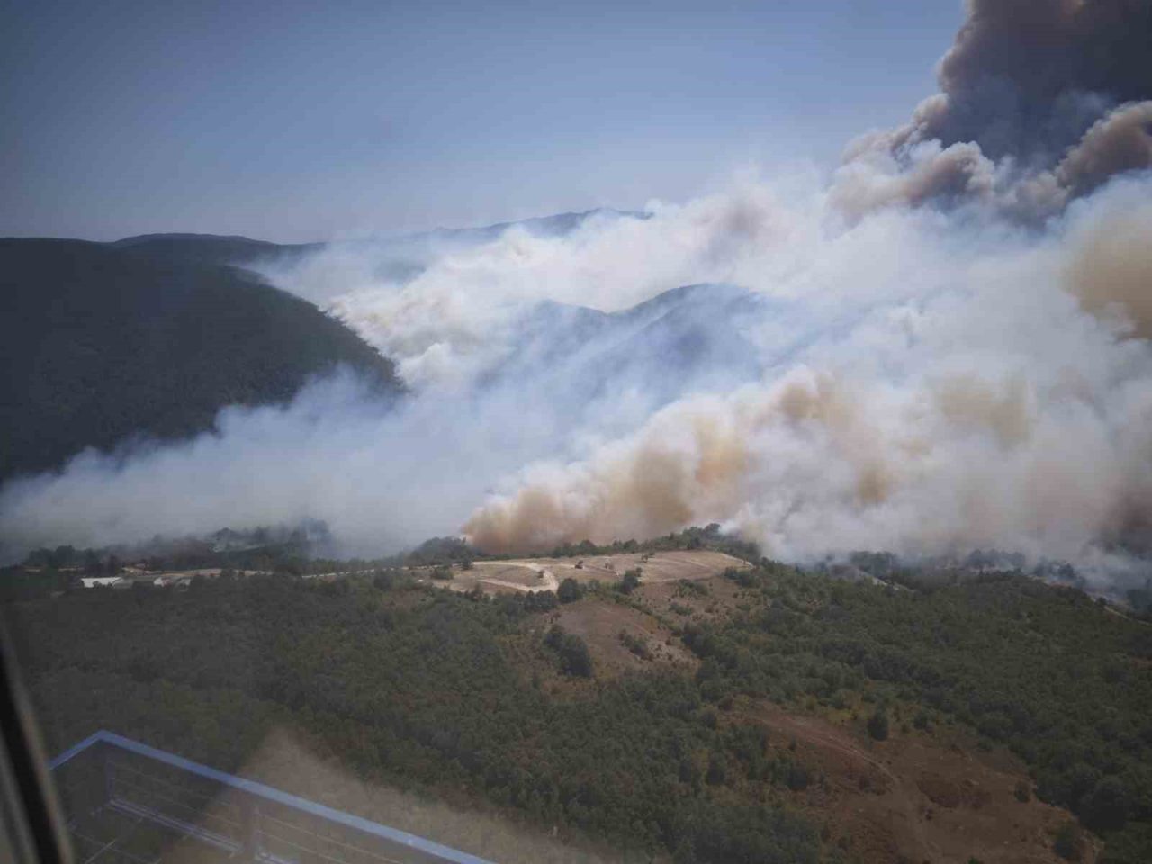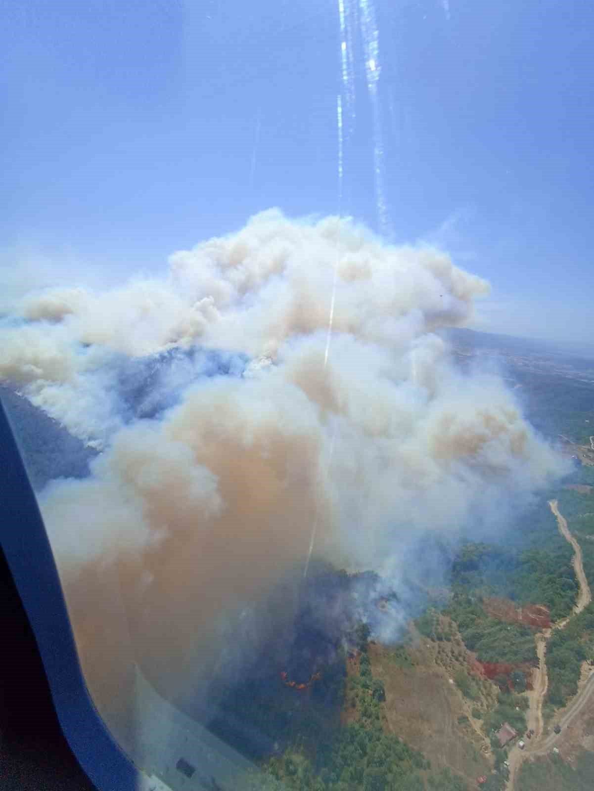 Öte yandan, yangın söndürme çalışmalarına katılan helikopterden çekilen görüntülerde dumanların geniş bir ormanlık alanı sardığı görüldü.