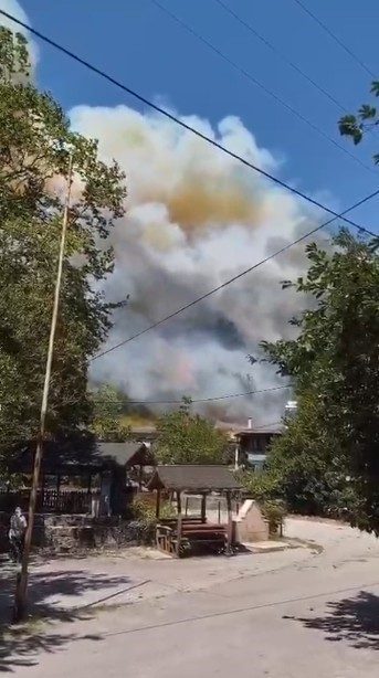 Ekipler, rüzgarın da etkisiyle yayılan alevleri kontrol altına almak için arazözlerle karadan, yangın söndürme helikopteriyle de havadan müdahale ediyor. Bölgede, tedbir amacıyla sağlık ekipleri de hazır bekletiliyor.