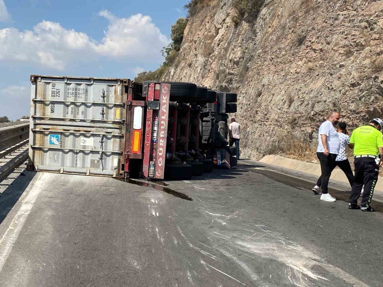 Kocaeli D-100 kara yolunda devrilen tırda sıkışan sürücü, itfaiye ekipleri tarafından çıkarıldı. Yaralı sürücü hastaneye kaldırılırken, yolun ortasına devrilen tır sebebiyle İstanbul istikametinde kilometrelerce araç kuyruğu oluştu.