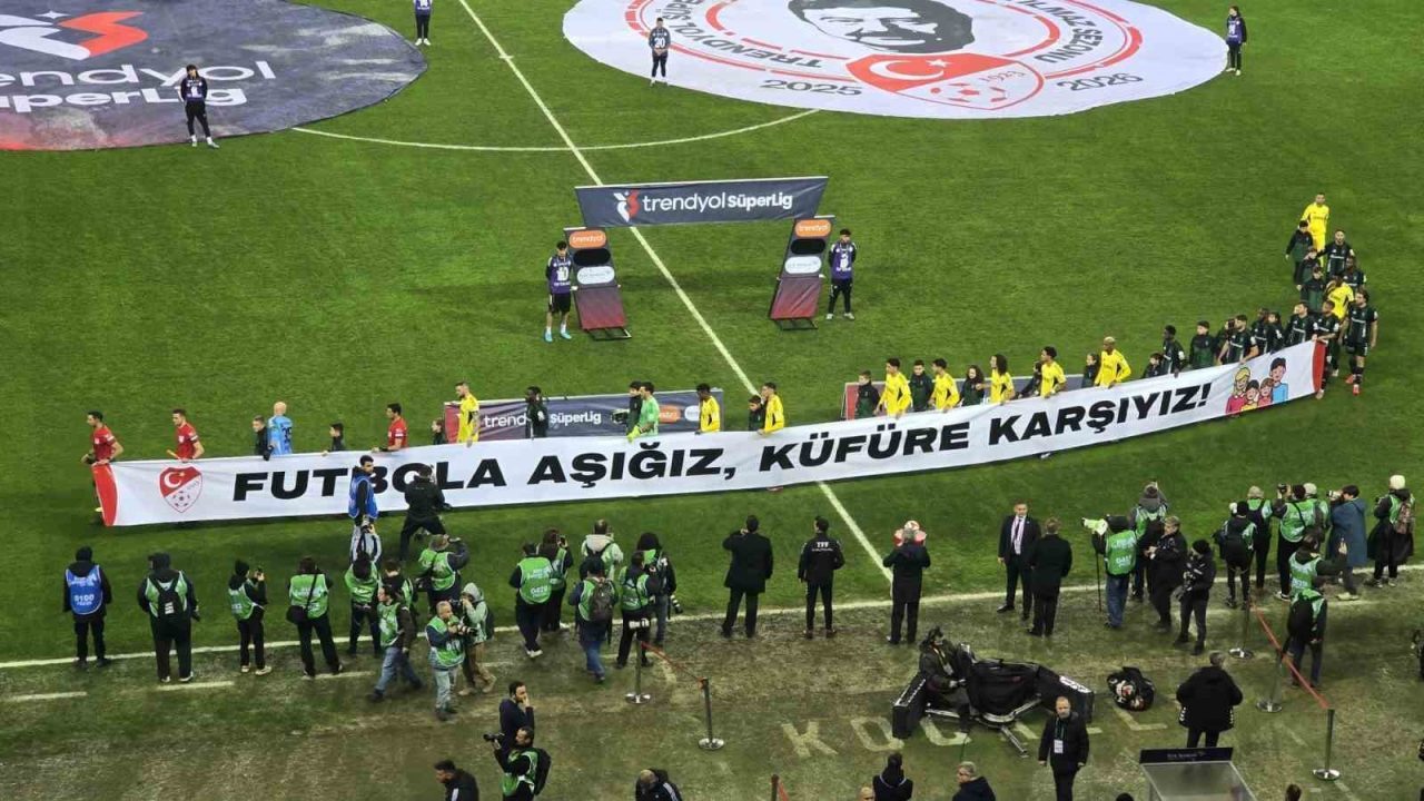 Süper Lig’in 20. haftasında Kocaelispor, Fenerbahçe’yi konuk ediyor. İki takım futbolcuları sahaya birlikte taşıdıkları “Futbola aşığız, küfüre karşıyız” pankartıyla çıktı.