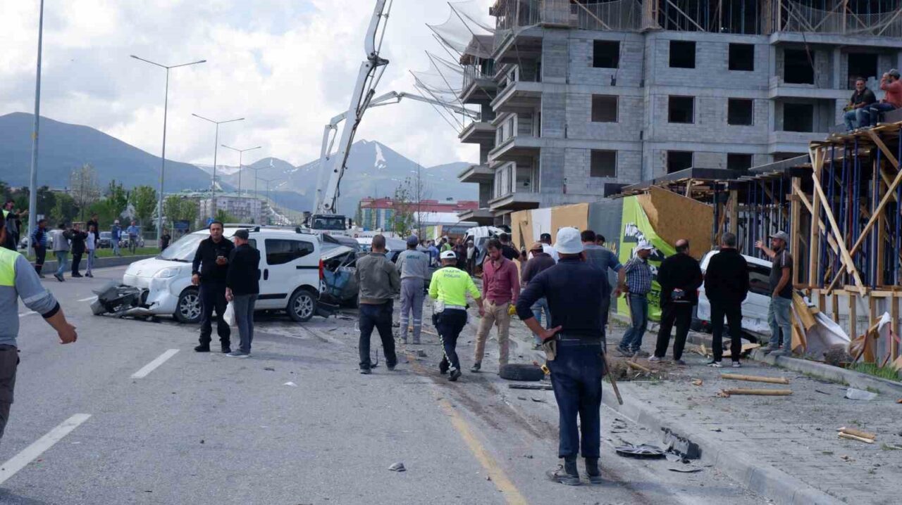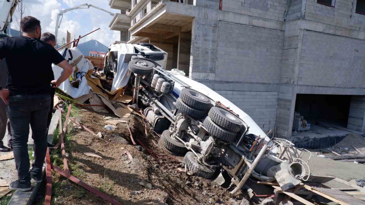 ERZURUM’DA BİR İNŞAATA BETON TAŞIYAN MİKSER ARACININ ŞOFÖRÜ SEYİR HALİNDEYKEN RAHATSIZLANDI, KONTROLDEN ÇIKAN MİKSER PARK HALİNDEKİ 8 ARACI HURDAYA ÇEVİRDİ.