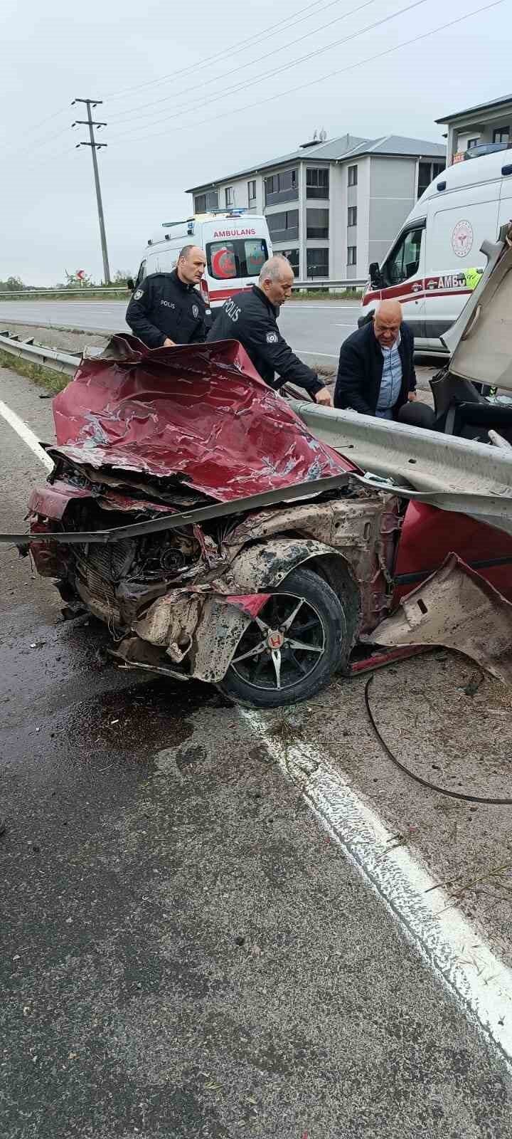 Sakarya’nın Söğütlü ilçesinde kontrolden çıkan otomobil, bariyerlere saplandı. Kağıt gibi ezilen otomobilde 2 kişi ağır yaralandı.
