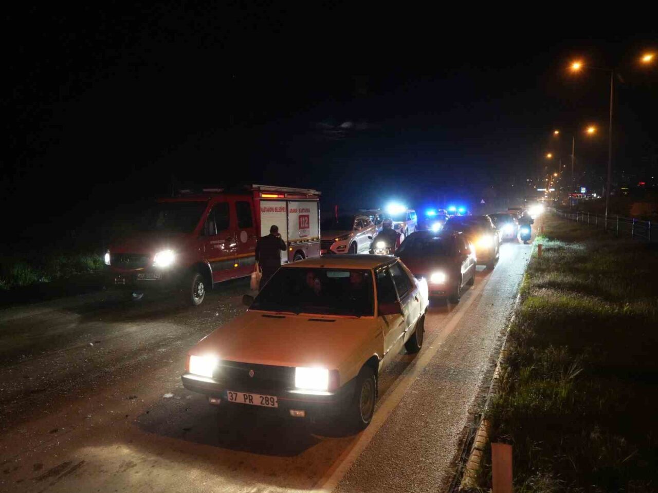 Kaza, Kastamonu-İnebolu karayolu Öz Bereket Kavşağı’nda meydana geldi. Edinilen bilgiye göre, E.K. (21) idaresindeki 60 ES 842 plakalı Opel marka otomobil, sürücüsünün direksiyon hakimiyetini kaybetmesi sonucu kırmızı ışıkta bekleyen A.F.T. (20) yönetimindeki 37 EK 030 plakalı Fiat-Tofaş marka otomobil ile H.T. (47) yönetimindeki 34 CNY 979 plakalı Fiat marka otomobile ve R.H.A. (26) idaresindeki Honda marka otomobile çarptı. 4 aracın karıştığı zincirleme trafik kazasında Fiat-Tofaş marka otomobilde bulunan yolcular araçta sıkıştı. Adeta can pazarının yaşandığı feci kazada olay yerine itfaiye, sağlık ve trafik ekipleri sevk edildi. İtfaiye ve sağlık ekiplerinin çalışmasıyla araçta sıkışan yaralılar çıkartılarak ambulansa taşındı. Kazada araç sürücüleri E.K. (21) ve A.F.T. (20) ile araçlarda yolcu olarak bulunan A.T. (71), N.T. (53), E.Ş. (21), N.Ç. (24), A.T. (26), S.T. (42) ve 2 yaşındaki A.S.T. yaralandı. Yaralılar, sağlık ekiplerince Kastamonu Eğitim ve Araştırma Hastanesi’ne kaldırılarak tedavi altına alındı.