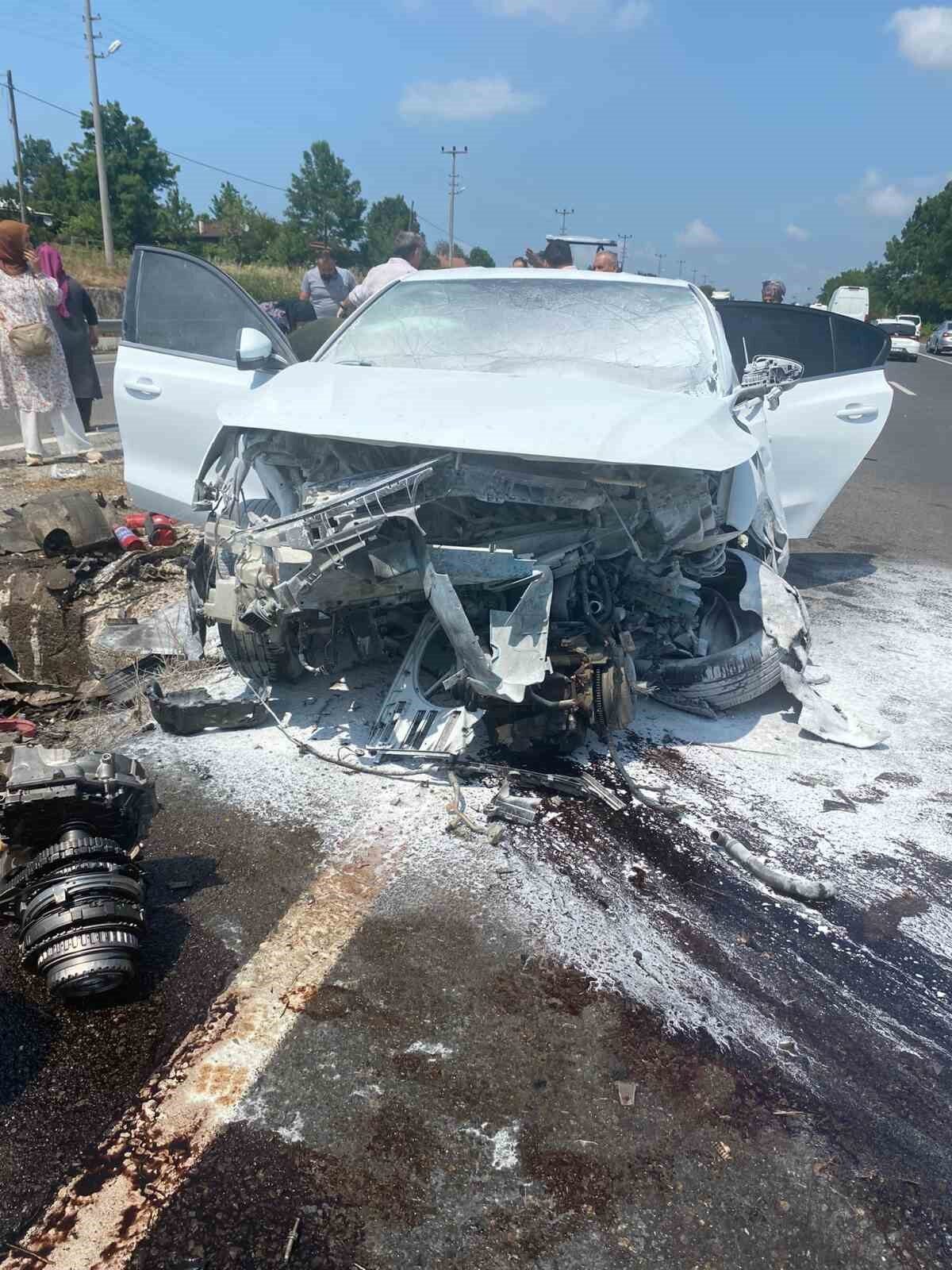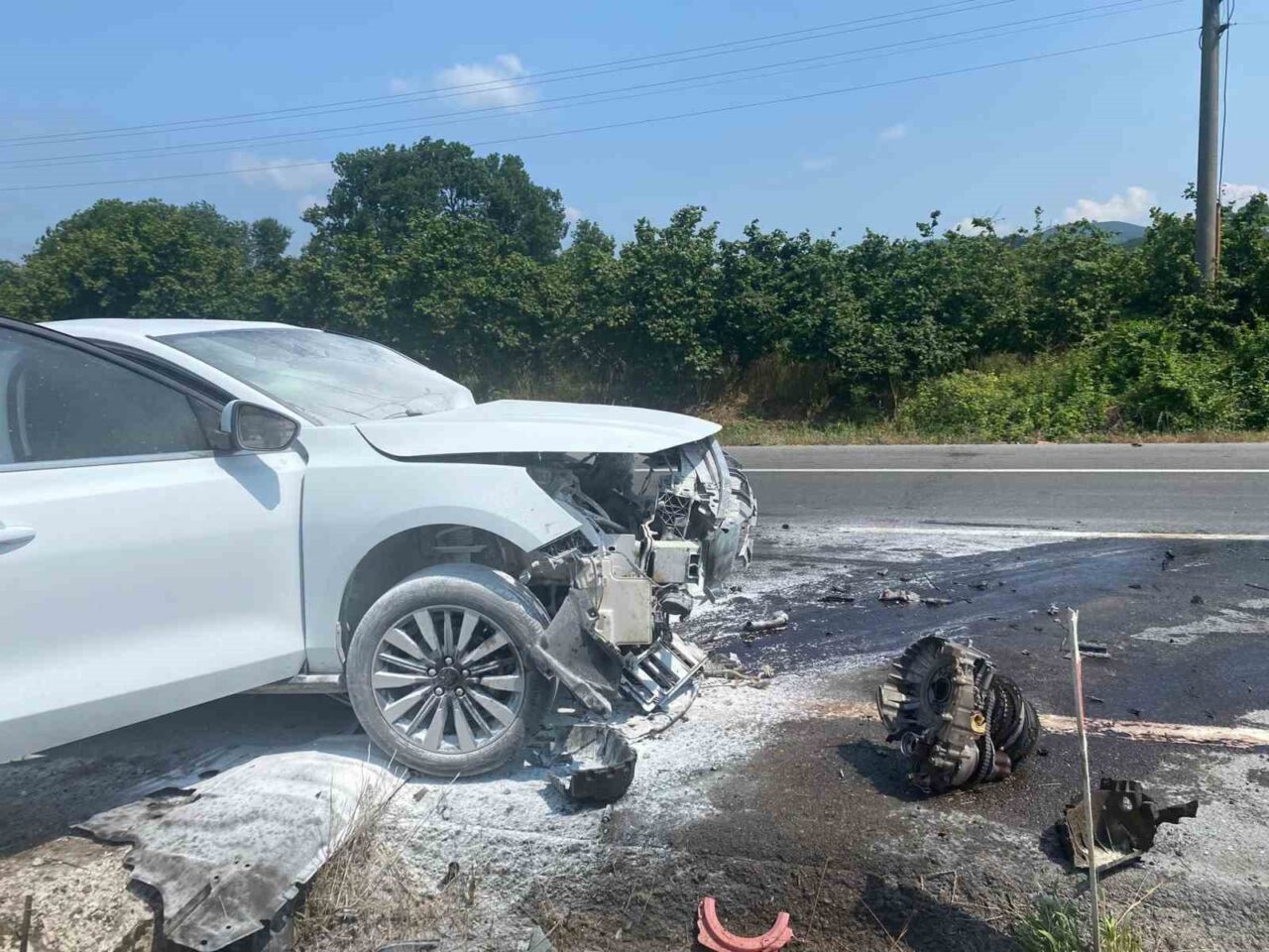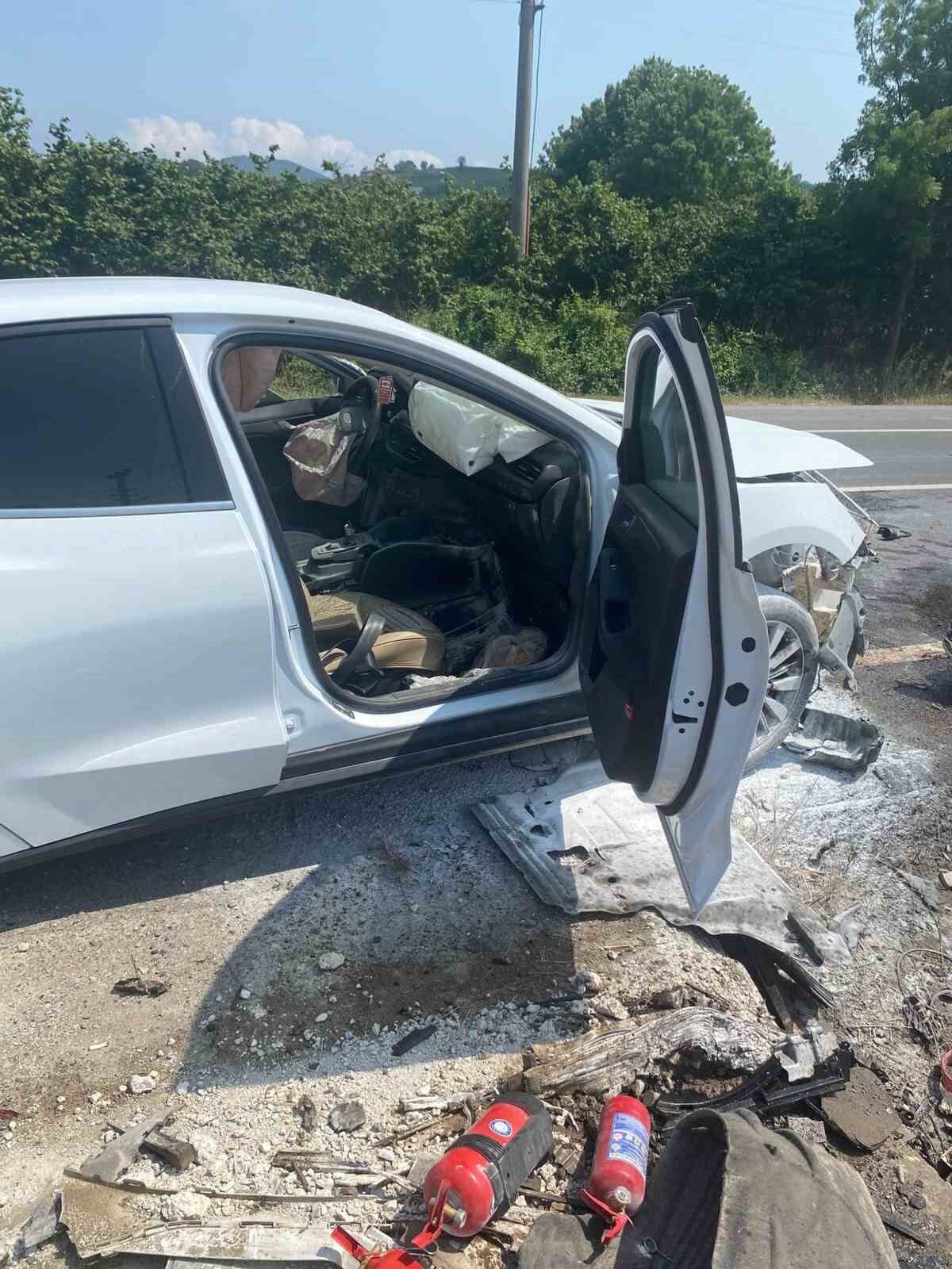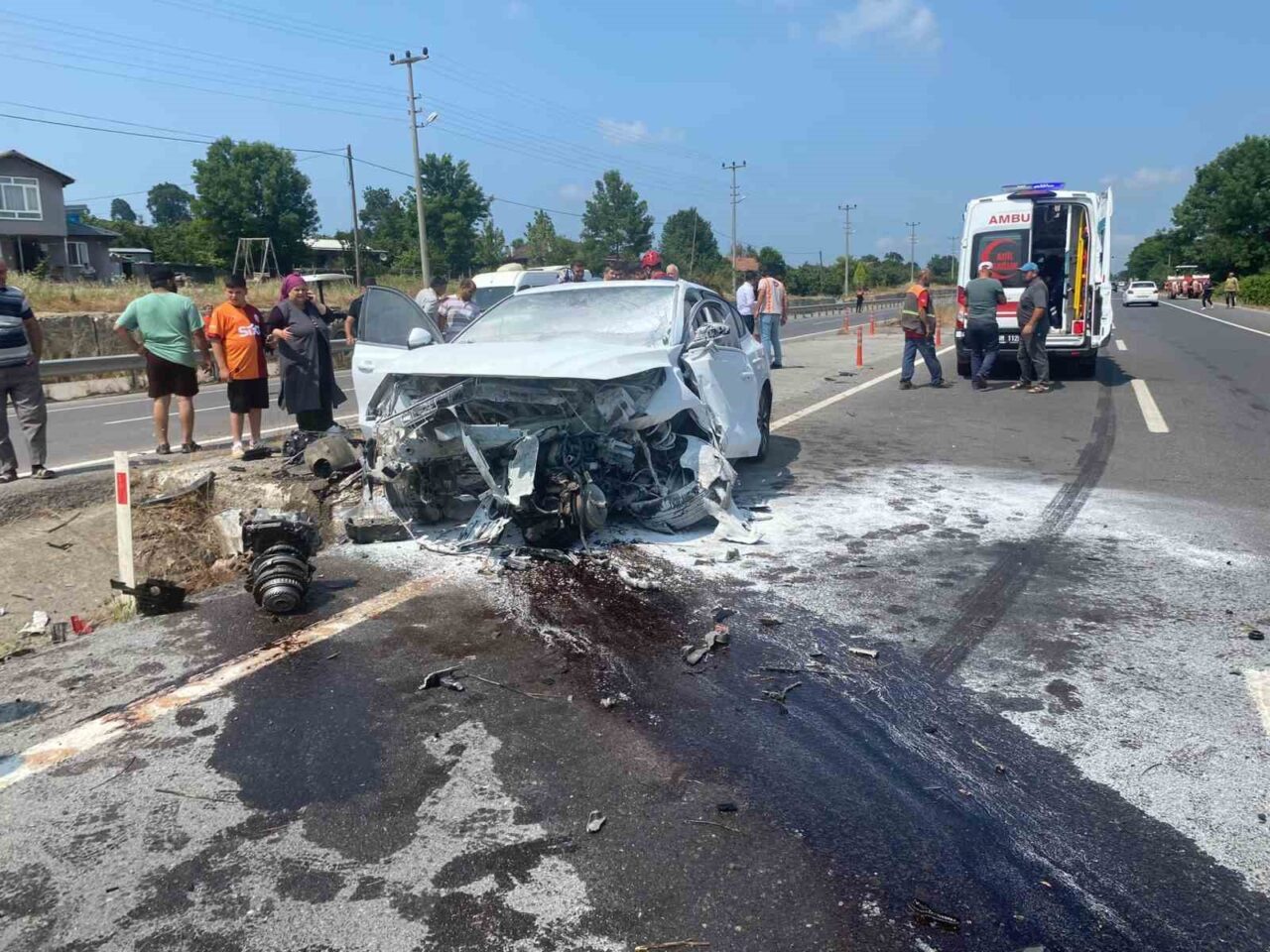 Sakarya’nın Karasu ilçesi D-650 kara yolunda kontrolden çıkan otomobil, refüje çarptıktan sonra alev aldı. Kazada 2 kişi hafif şekilde yaralanırken, yangına ilk müdahaleyi vatandaşlar yaptı.
