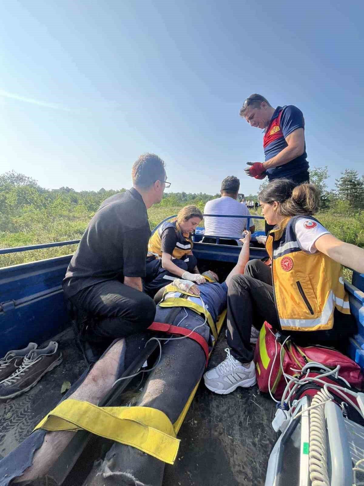 Zonguldak’ın Alaplı ilçesinde orman yolunda devrilen traktörün sürücüsü yaralandı. Sağlık ve itfaiye ekiplerince yaralı, yaklaşık 2 kilometre uzaktaki ambulansa taşındı.