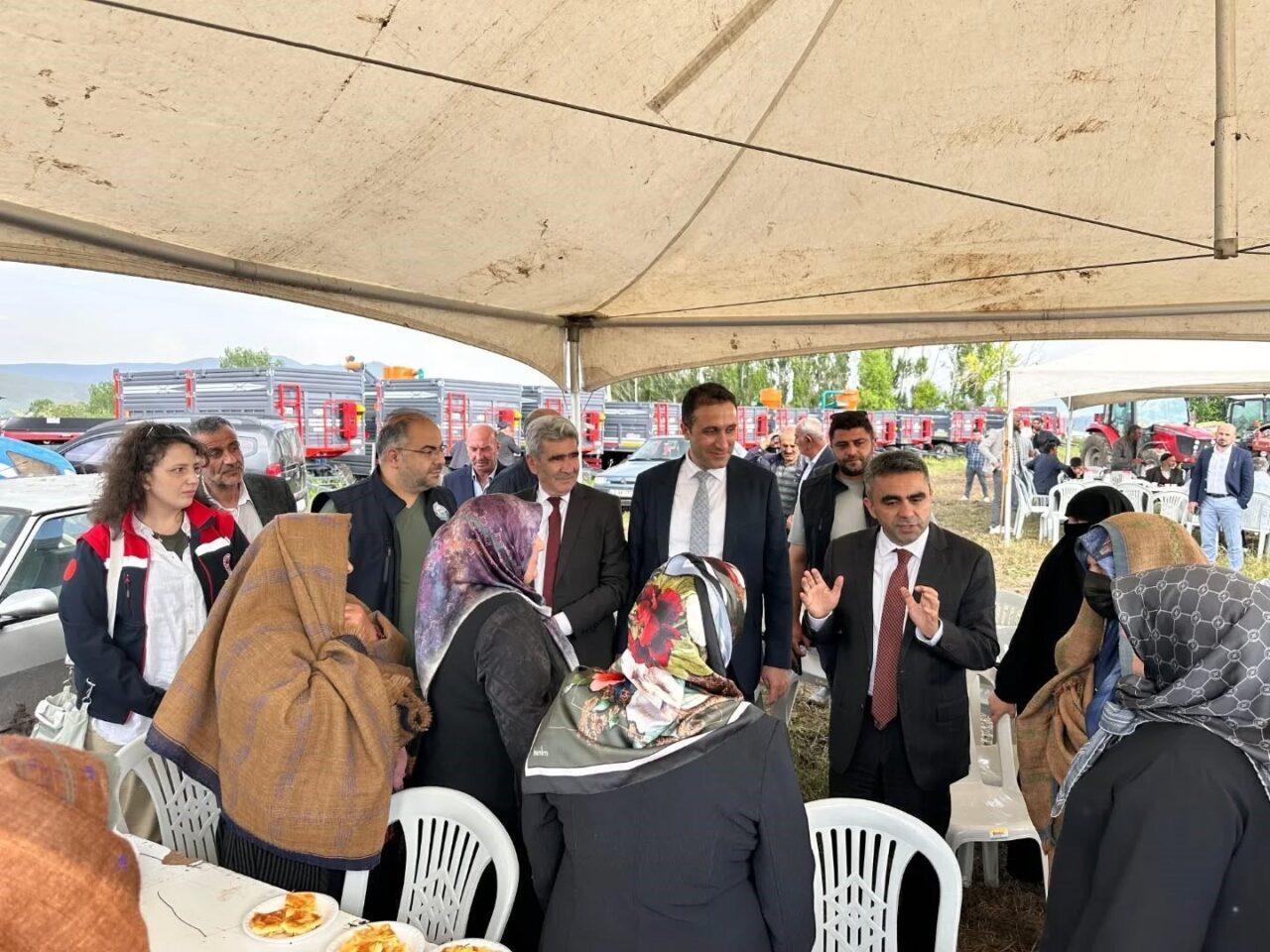 IPARD 3 Programı 2. Başvuru Çağrısı kapsamında hibe almaya hak kazanan Yiğitpınarı, Taşkaynak, Övenler mahalleleri “Tarımsal Kalkınma Kooperatifi Makine Parkı Projesi” kapsamında 86 parça tarım makinesinin teslim töreni yapıldı.