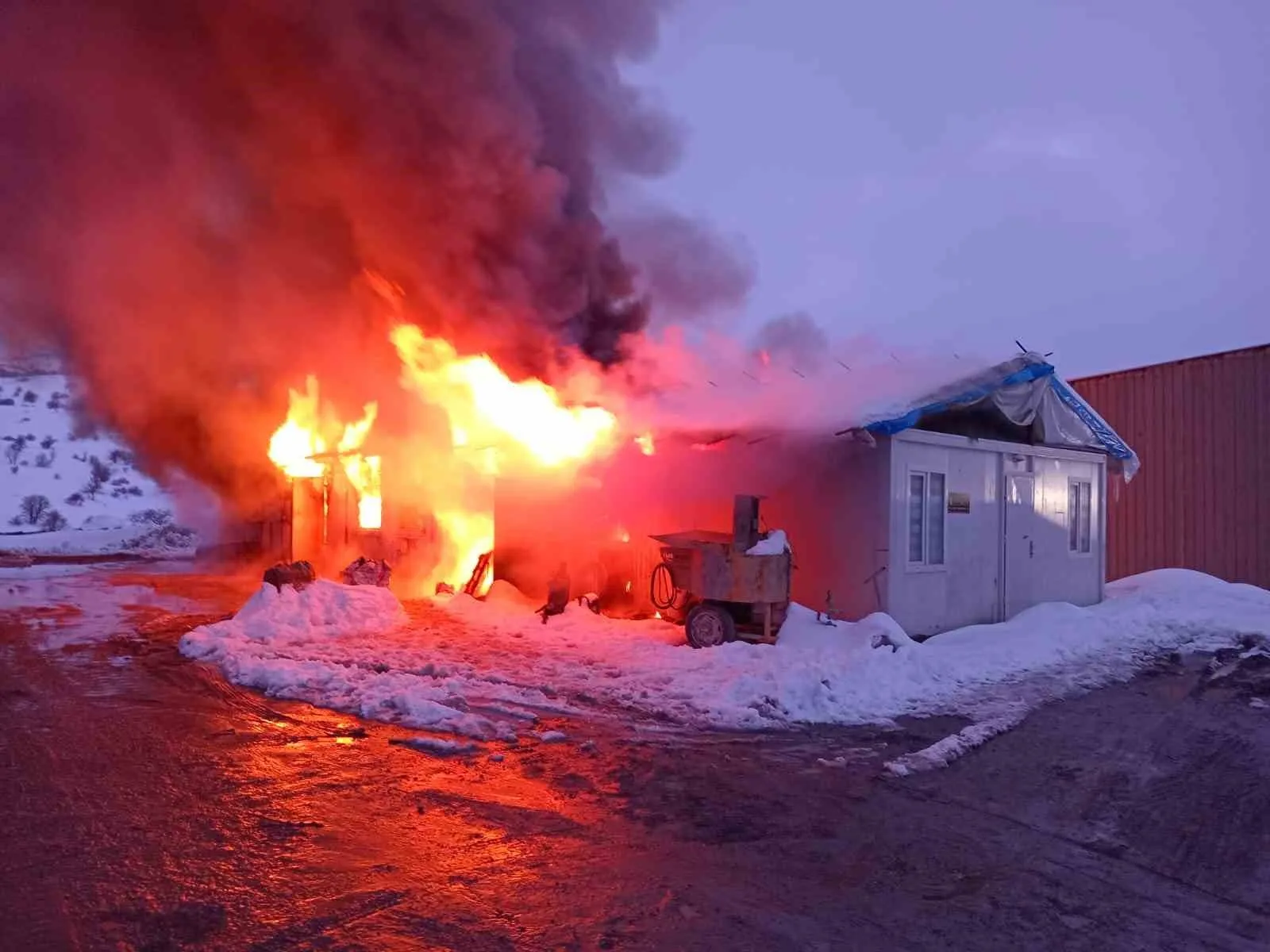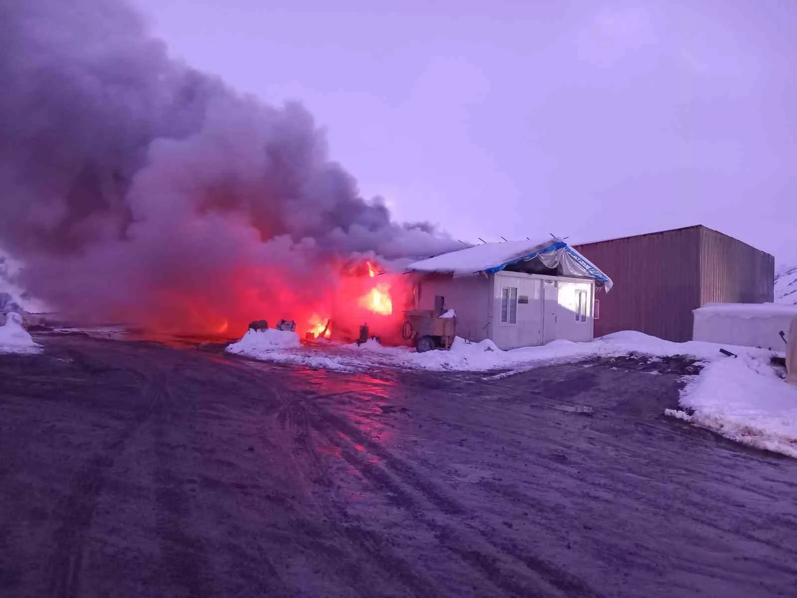 Bayburt Group İnşaat firmasına ait Kop Tünel inşaat şantiyesinde gece saatlerinde yangın çıktı. Herhangi bir can kaybı yaşanmazken, maddi hasar meydana geldi.