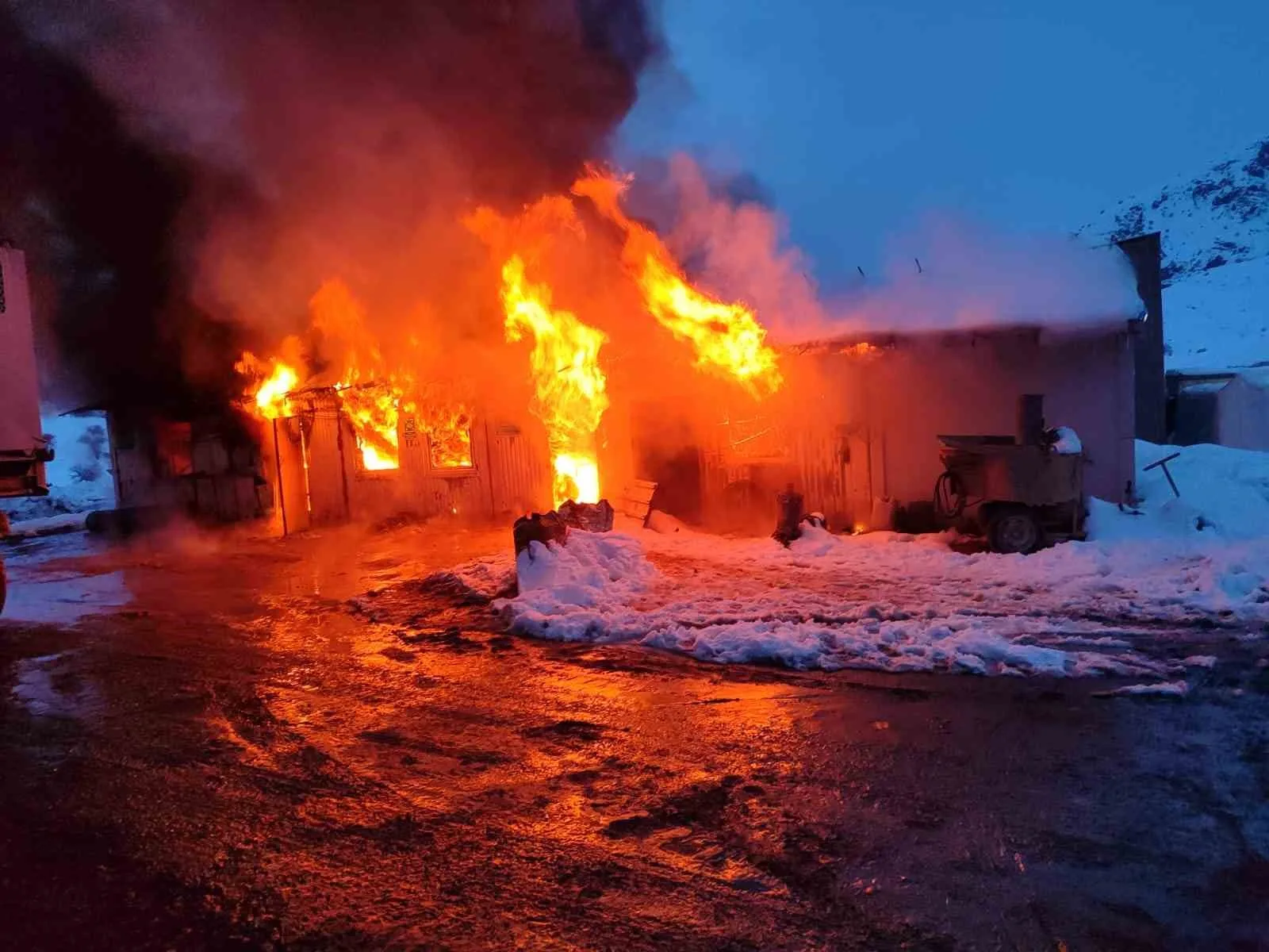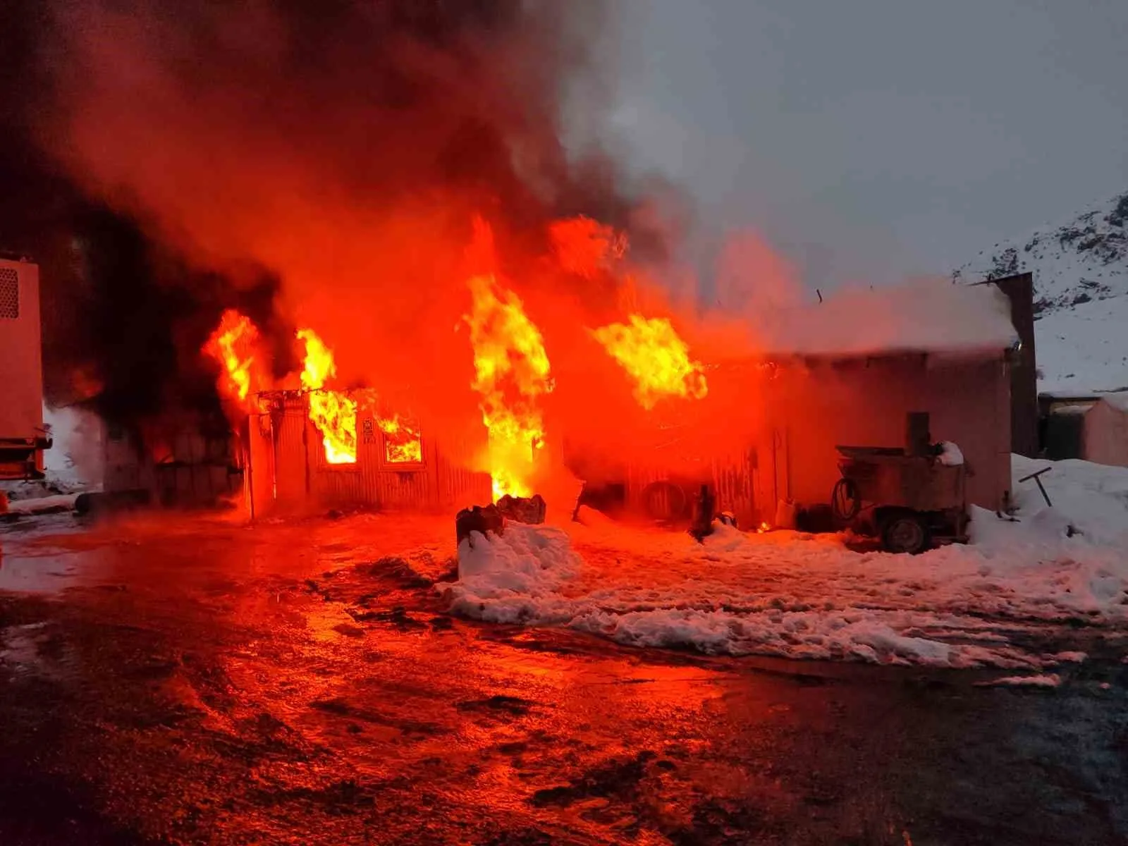 KOP TÜNEL ŞANTİYESİNDE YANGIN ÇIKTI