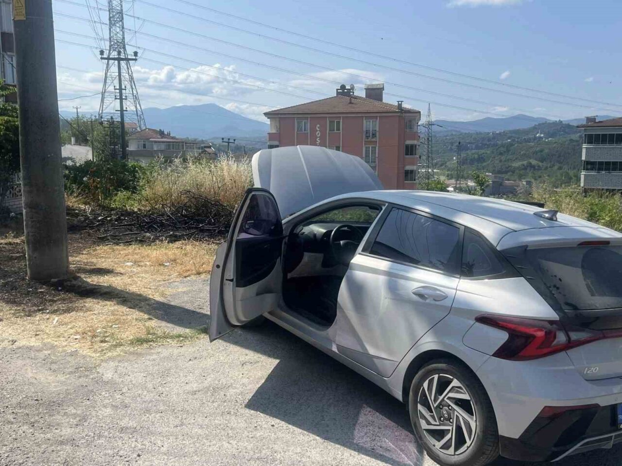 Edinilen bilgilere göre, olay sabah saatlerinde başlayan Alaplı Yeni Siteler Mahallesi Ulu Camii mevkiinde yaşandı. Henüz belirlenemeyen nedenlerden dolayı telin yere düşmesiyle kuru otlar alev aldı, ardından park halinde tutuşan otlarda A.G.’ye ait aracı sardı.