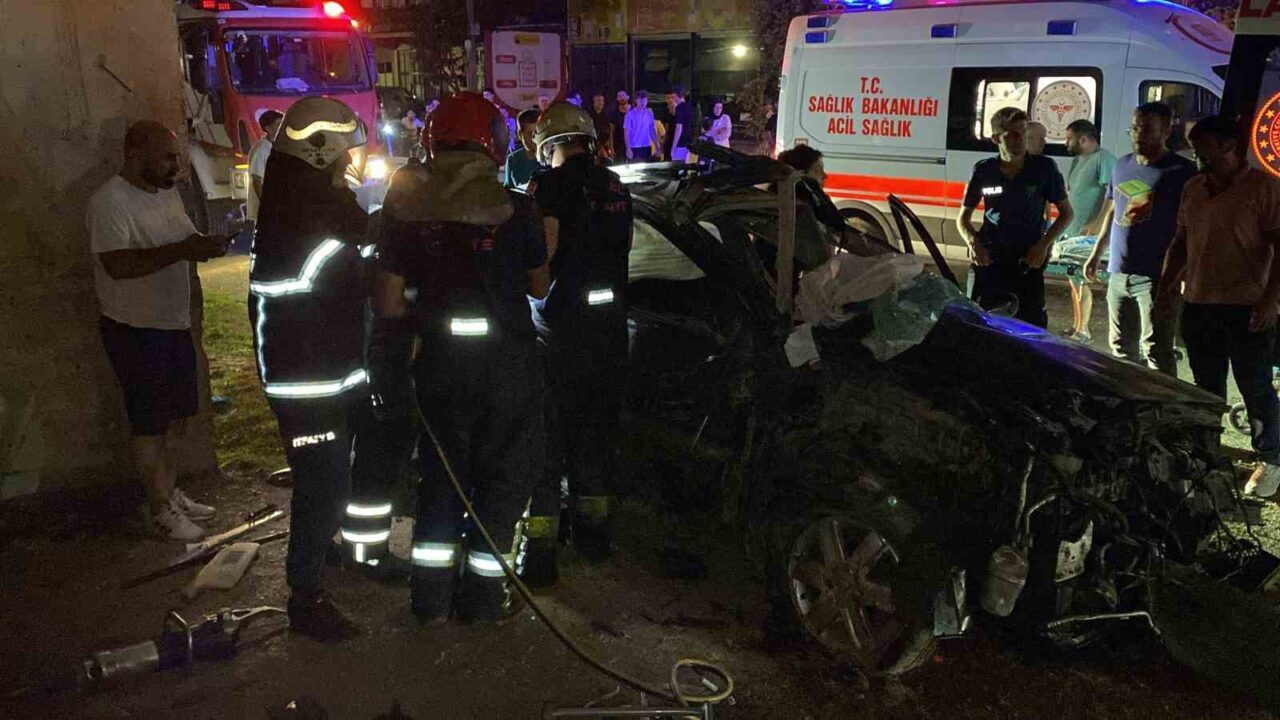 KÖPRÜ AYAĞINA ÇARPAN OTOMOBİL HURDAYA DÖNDÜ: 2 AĞIR YARALI