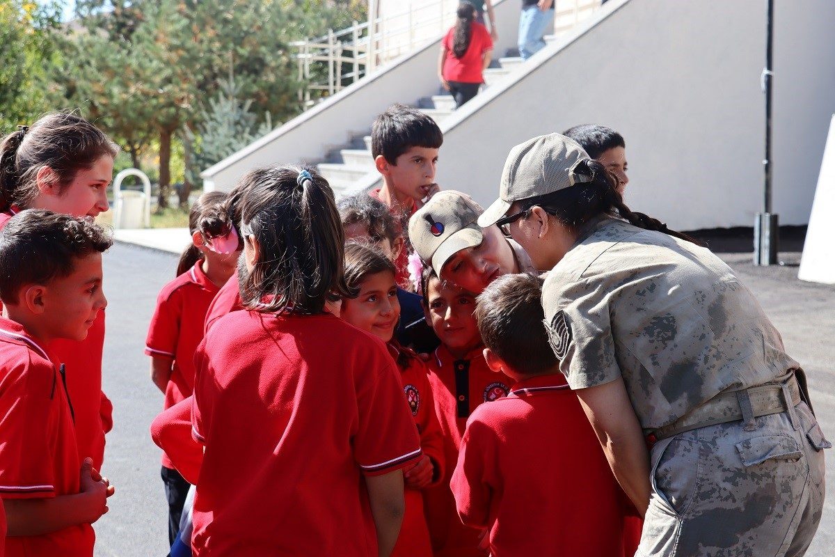 Açılış töreninde İstiklal Marşı okunarak jandarma tarafından öğrencilere hediyeler dağıtıldı.
