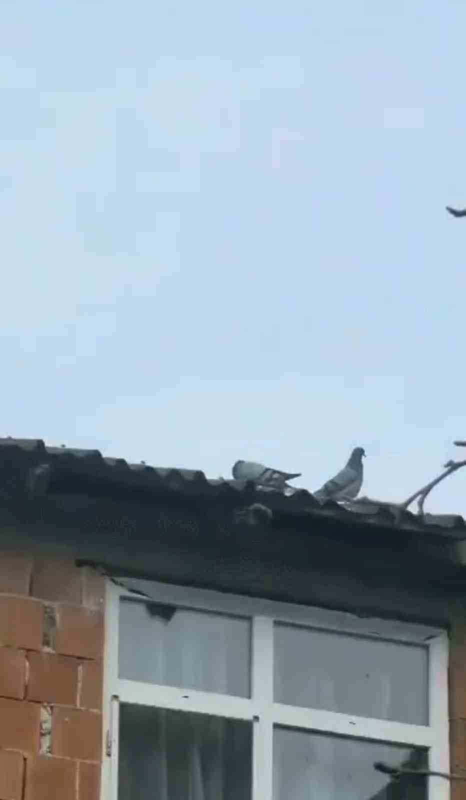RİZE’NİN ARDEŞEN İLÇESİNE BAĞLI DUYGULU KÖYÜNDE YOLDAN GEÇERKEN BİR EVİN ÇATISINDA AYAĞI İPE DOLANAN GÜVERCİNİ GÖREN KÖY SAKİNİ DÜŞME PAHASINA ÇATIYA ÇIKARAK GÜVERCİNİ KURTARDI.