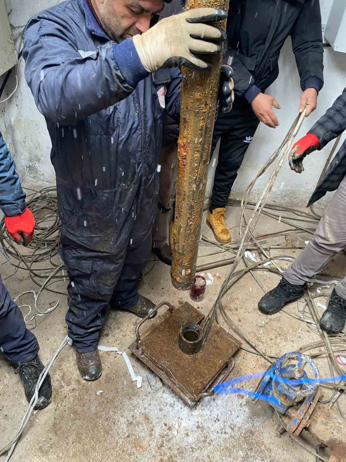 İhbarın ardından bölgeye sevk edilen İl Özel İdaresi Su ve Kanal Hizmetleri ekipleri, zorlu hava koşullarına rağmen kısa sürede çalışmalara başladı. Yapılan incelemede içme suyu pompasının arızalı olduğu e kuyudan çıkarılan pompanın tamirinin mümkün olmayacağından değişimine karar verilmişti. Pompa tedarikinin yapılmasının ardından pompa değiştirerek şebekeyi yeniden faaliyete geçirdi.